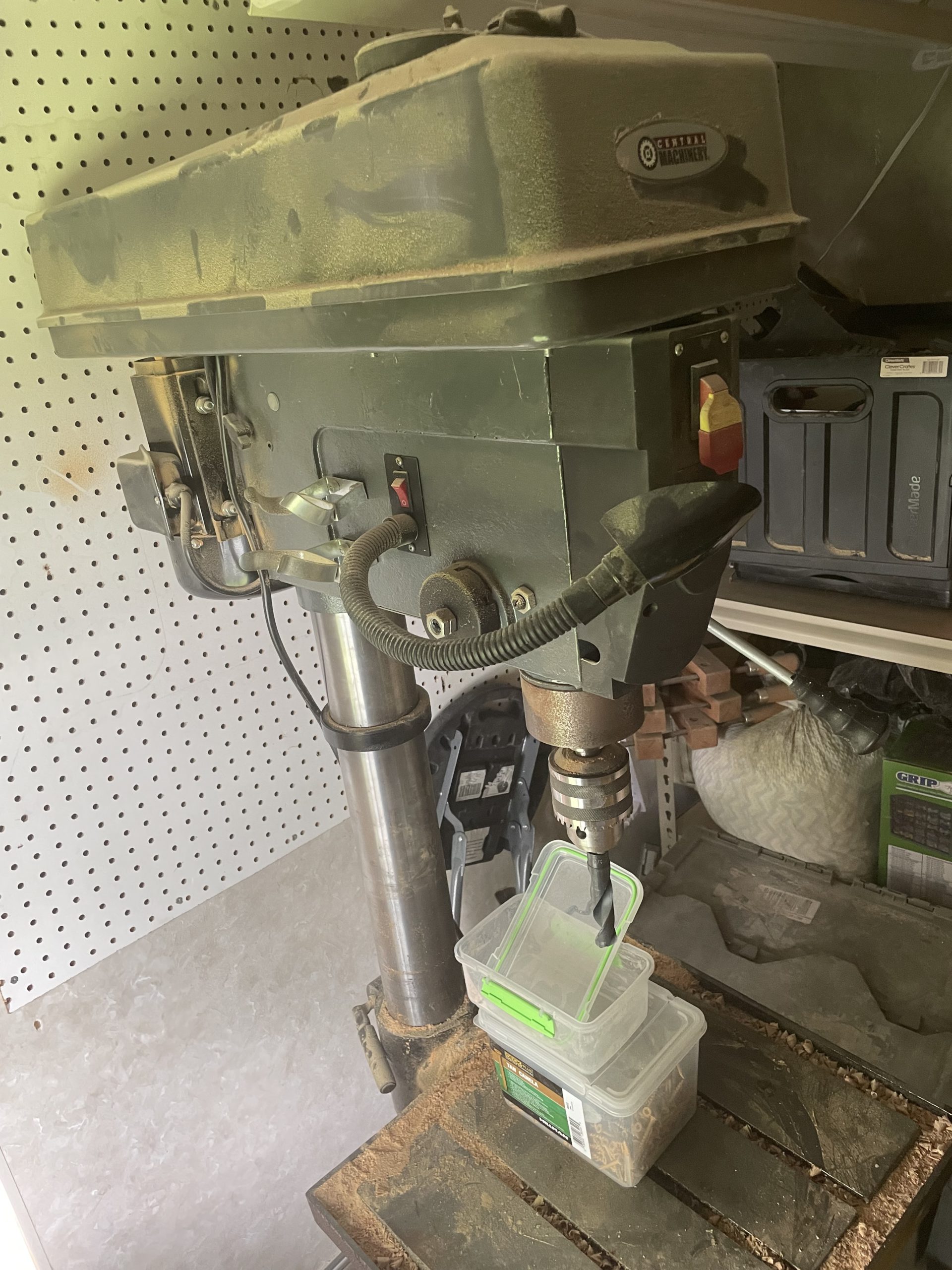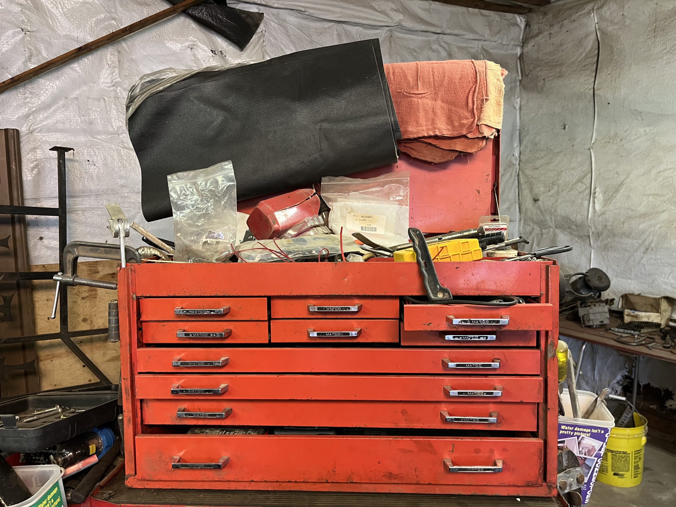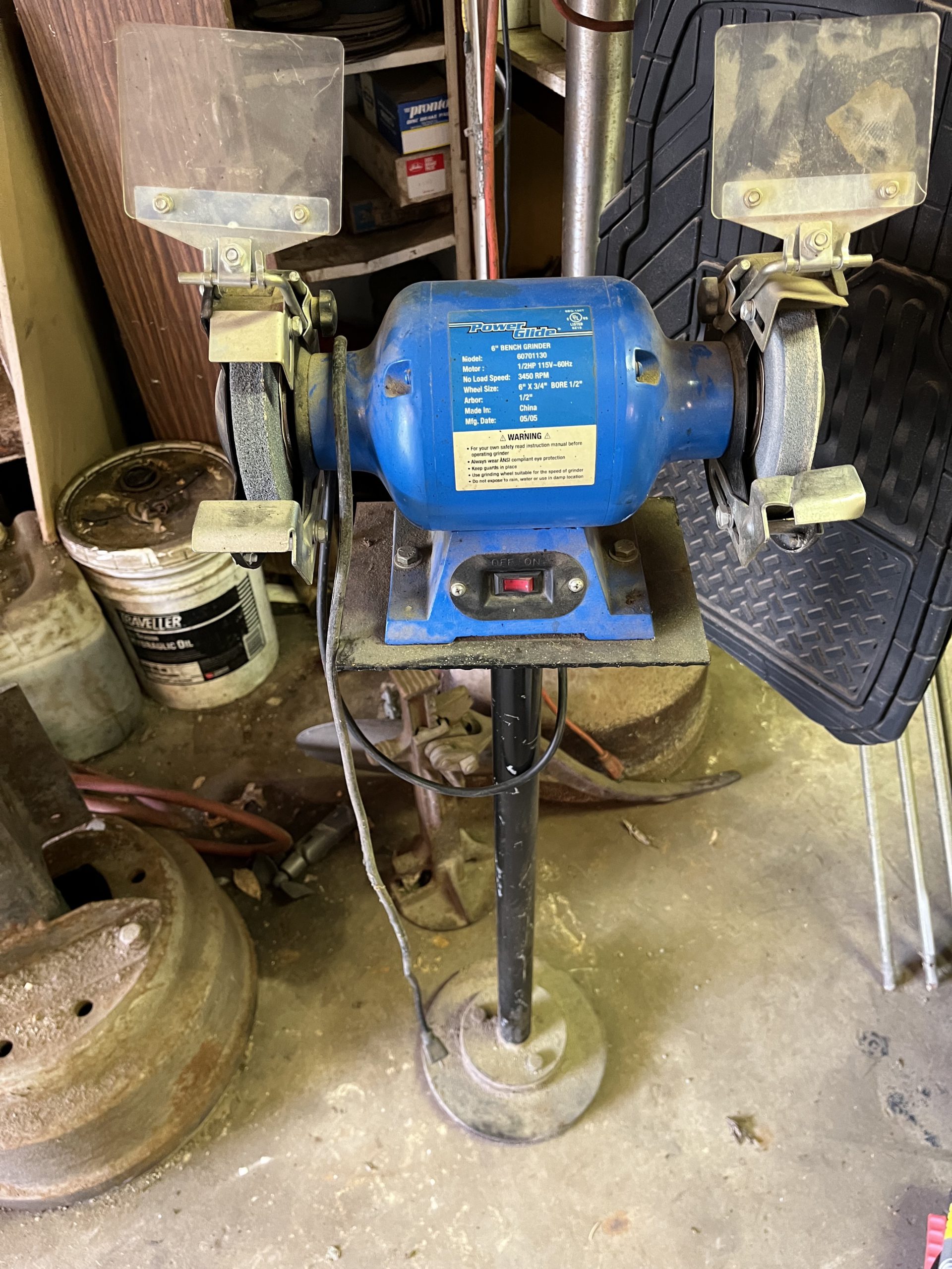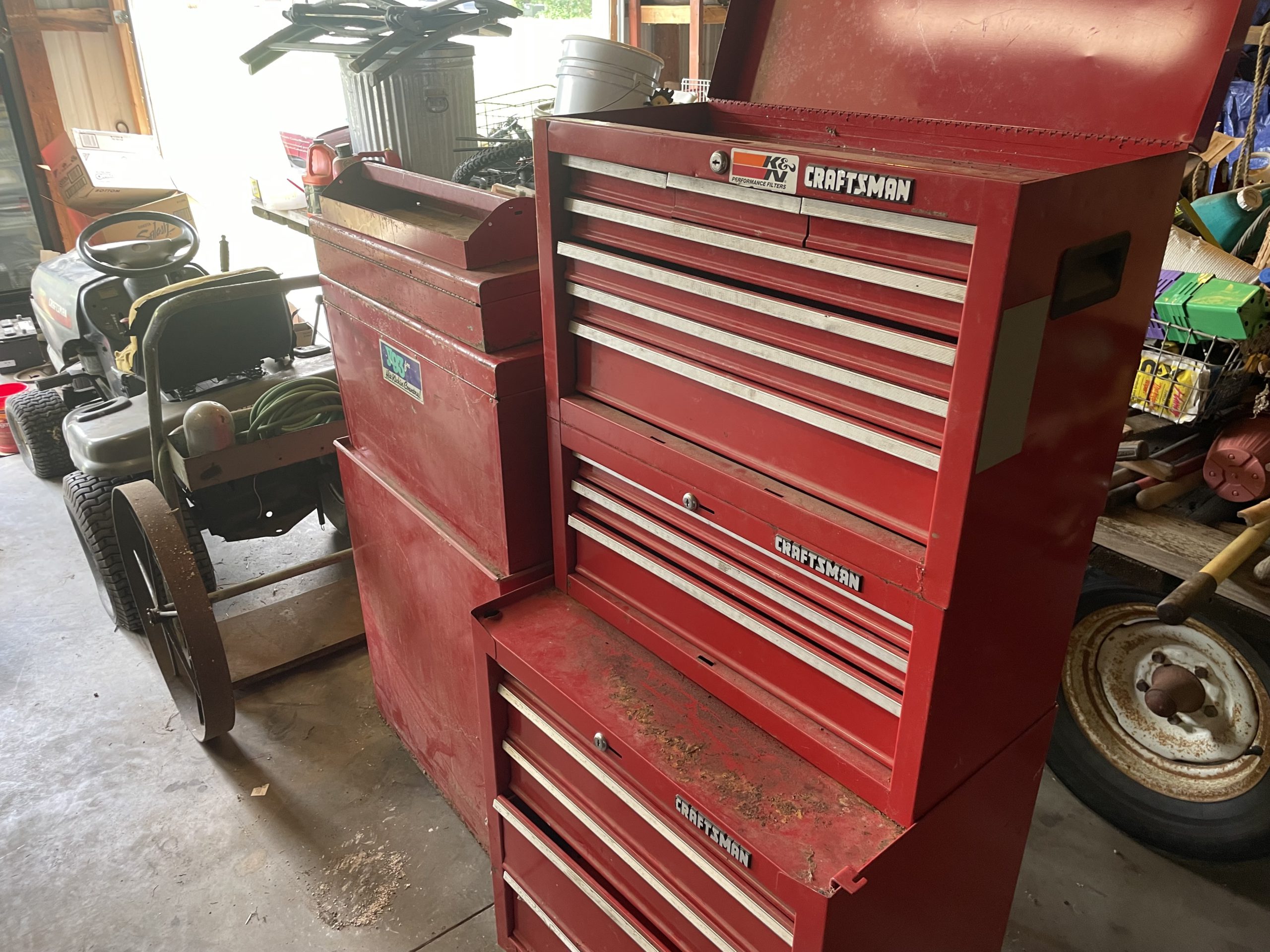 JD Model E 1 ½ hp stationary engine; 2-wheel car dolly; 6 Honda motorcycles, Moto Guzzio moped all not running; Honda Super Sport 550 motorcycle, needs work; Miller Matic 200 electric welder; Coats 2020 SuperStar tire changer/wheel balancer; Clarke drill press; Dewalt 740 power shop radial arm saw; jacks, grinder; vise; Gorilla ladder; Powermate 3750 watt generator; cement tools, Mac rolling tool chest; Matco tool box, cordless drills; battery chargers; engine stand; Walker body jack kit; jigsaws; ramps; ammo boxes; misc rims and tires; bicycles; old wheels, motor parts; telescope; plus more.
