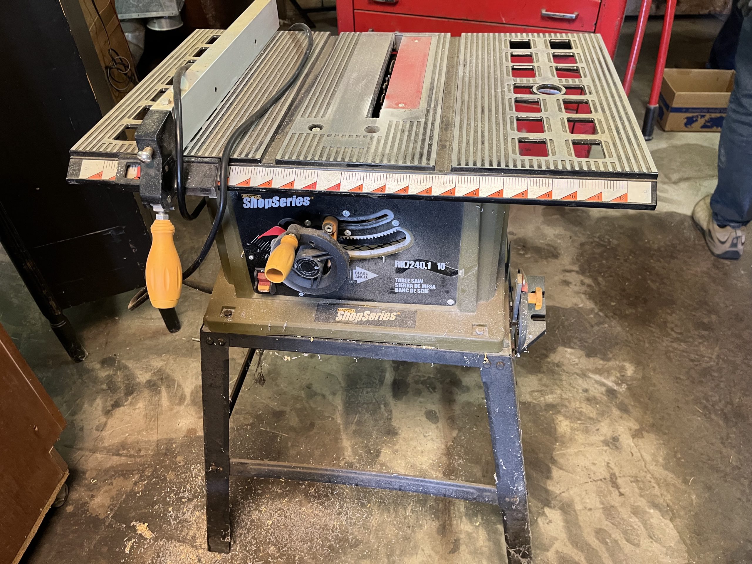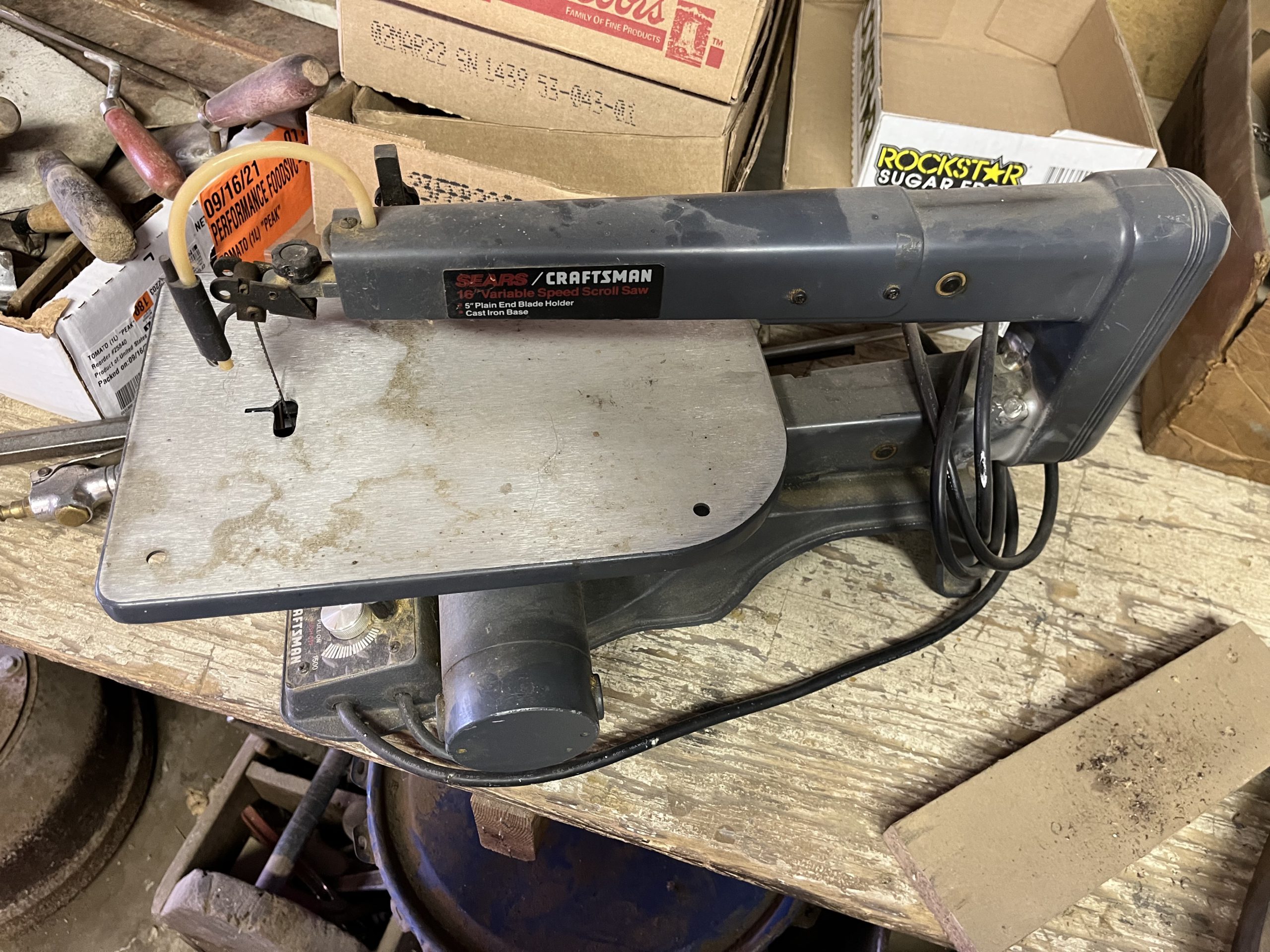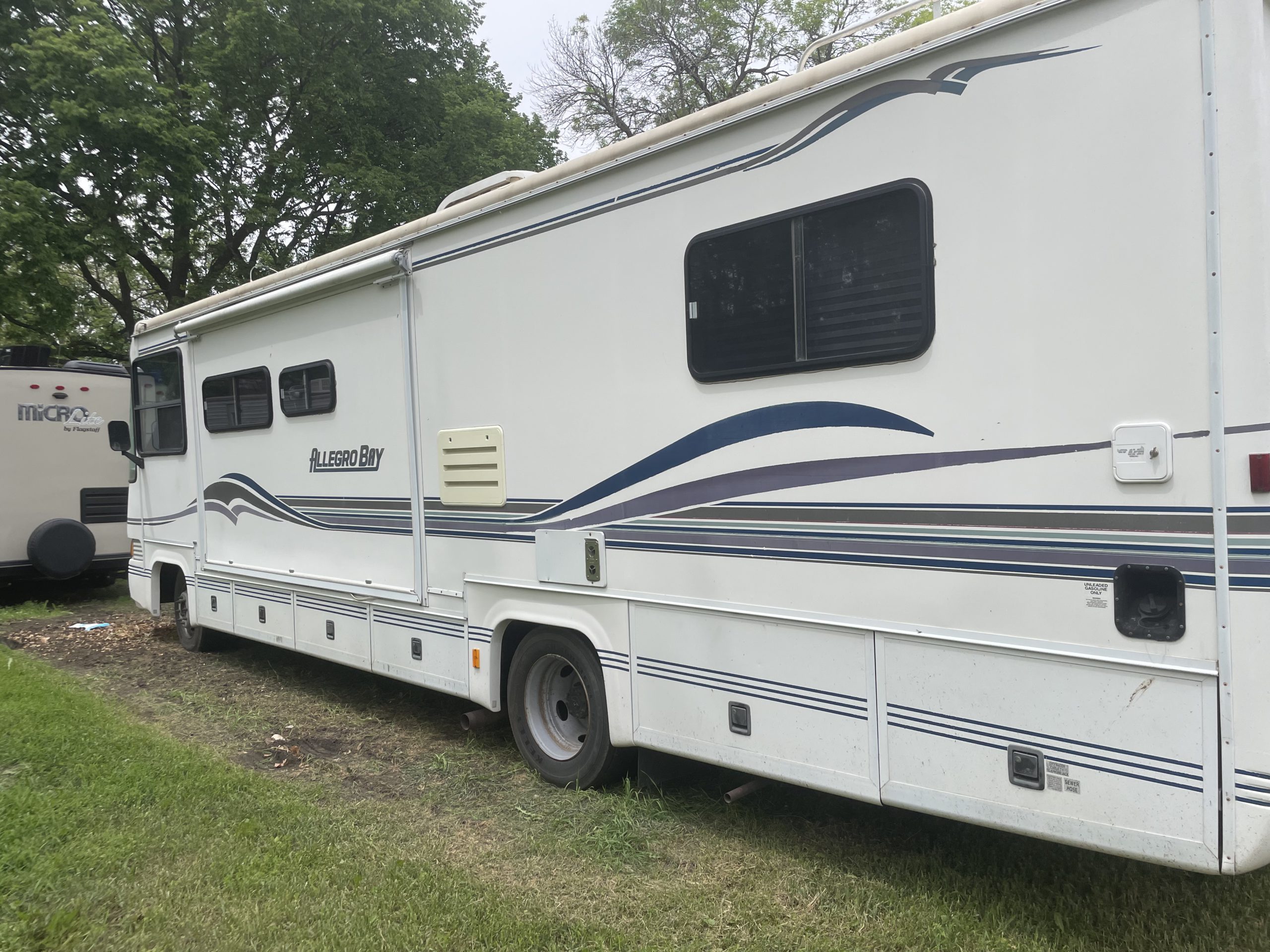 1999 Ford Allegro Bay motor home, less than 12,000 miles, one slide, inside needs work; 2006 Forest River 8’ x 32’ trailer used as wood workshop; Central Pneumatic steel blaster cabinet; Ryobi router table; trolling motor; lawn sweeper; jack stands; 4-ton floor jack; shop vac; Porta Cable disc and belt sander; Grizzly 12” drum sander; dust collector; 12 speed drill press; band saw; tool boxes; Bosch TS-3000 fold up table saw; Porta Cable profile sander; Lund boat/trailer, no title; Cub Cadet snow blower fits XT1 And XT2 Enduro Series; plus many more woodworking tools.