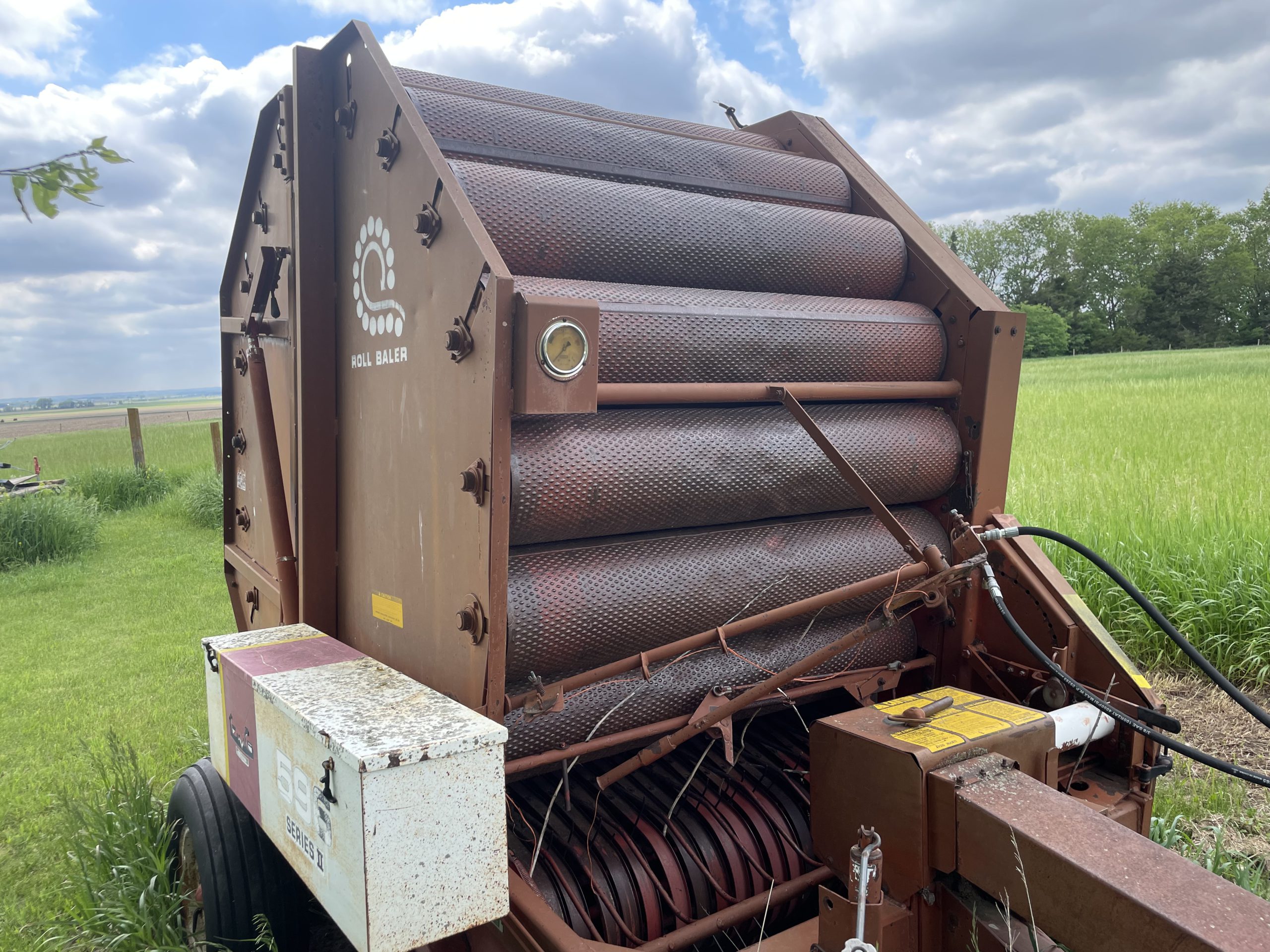 Tractor/Machinery/Pickup: AC 185 tractor, shows 3341 hrs, wf, cab, 3pt, diesel/ AC #500 loader; OMC 596 Series II round baler; NI side delivery rake; IHC 1000 bar mount sickle mower; pull type 2 wheel 55 gallon sprayer; flatbeds; 10ft single disk; 2 wagons; elevator; Speedco 3pt post auger; King Kutter 3pt garden tiller, Kiefer 16 ft bumper hitch livestock trailer; 1999 Dodge 2500 Ram pickup, 4 x 4, SLT Laramie, topper, extended cab; 383,000 miles; plus more