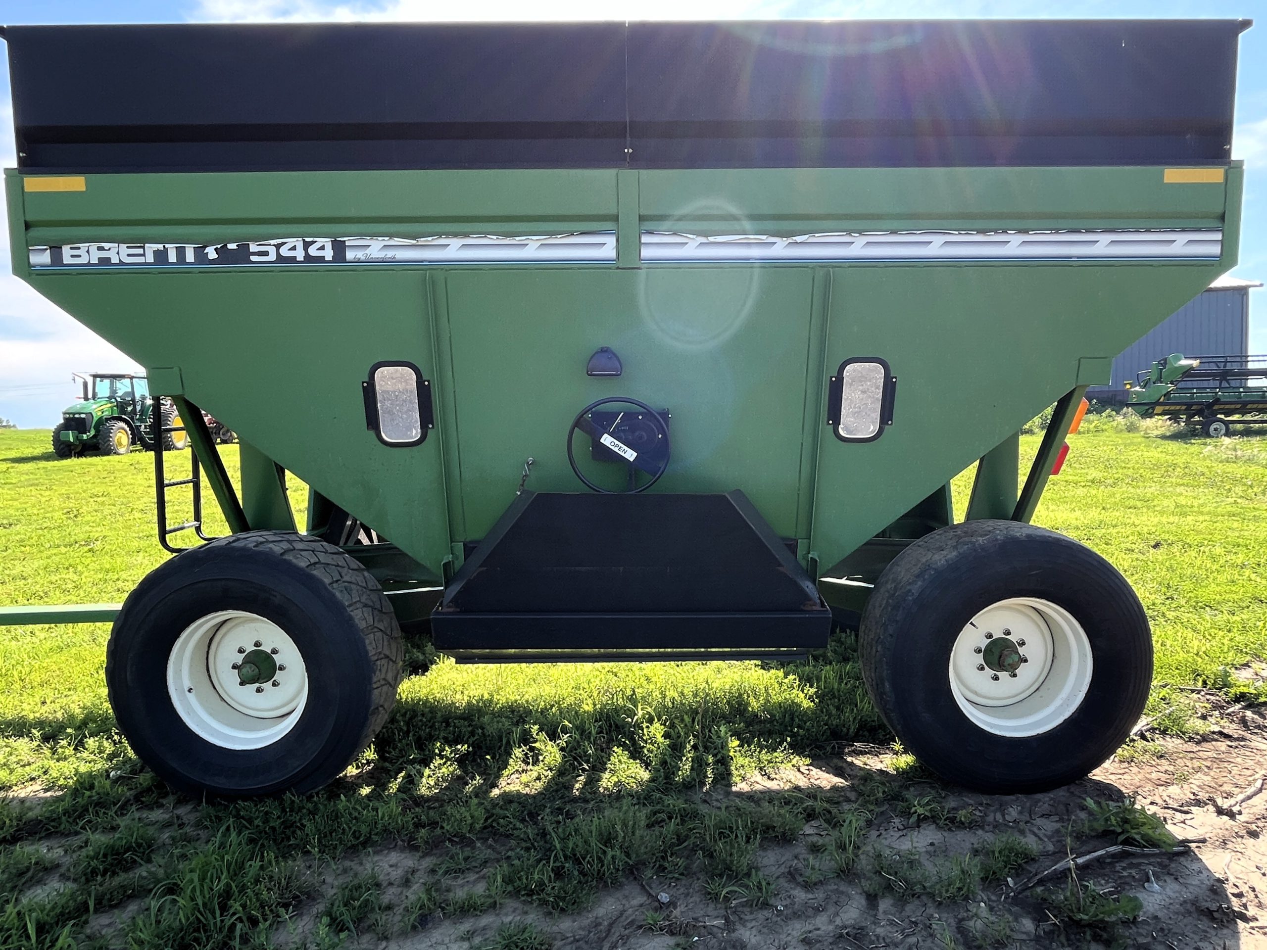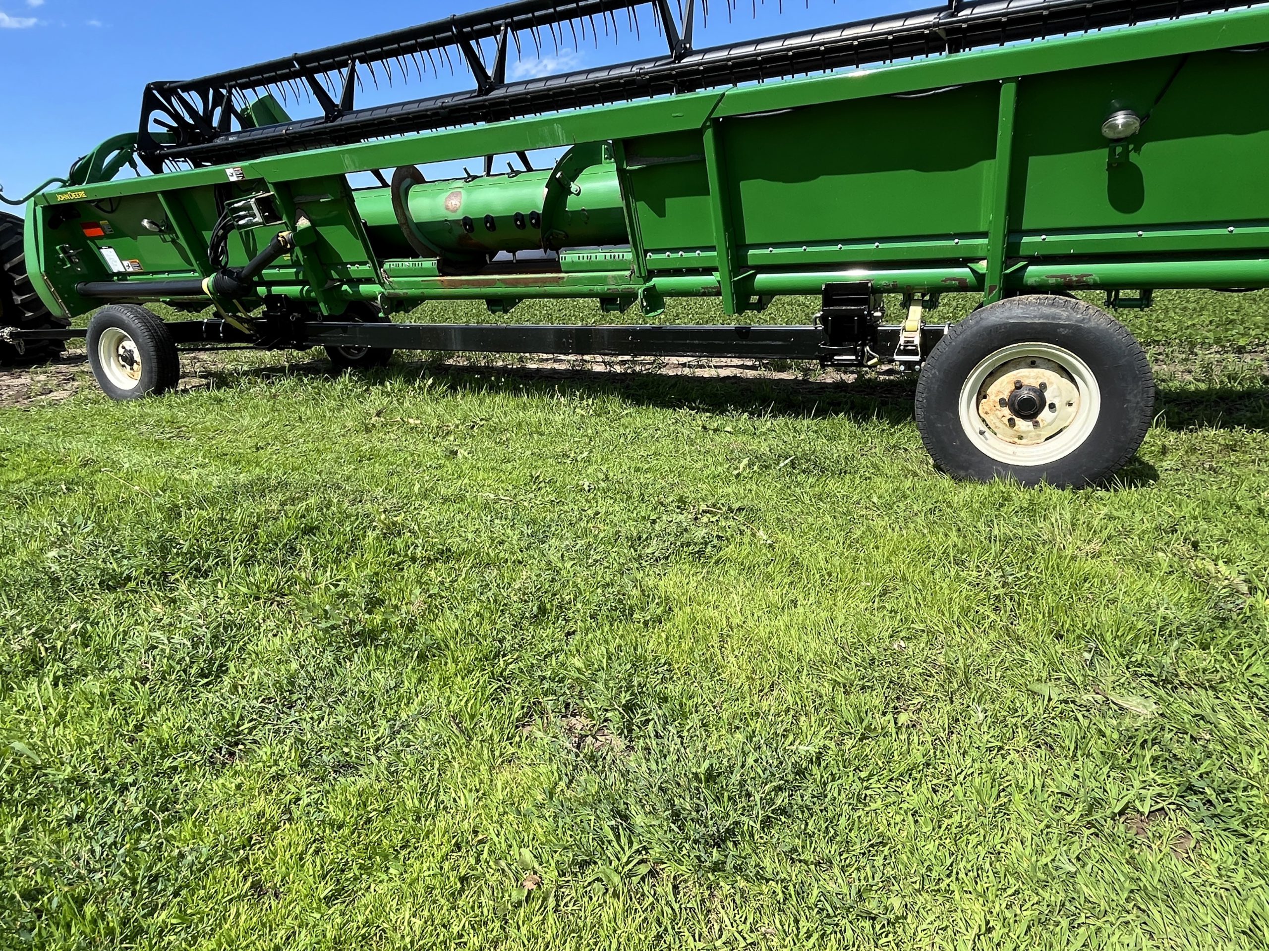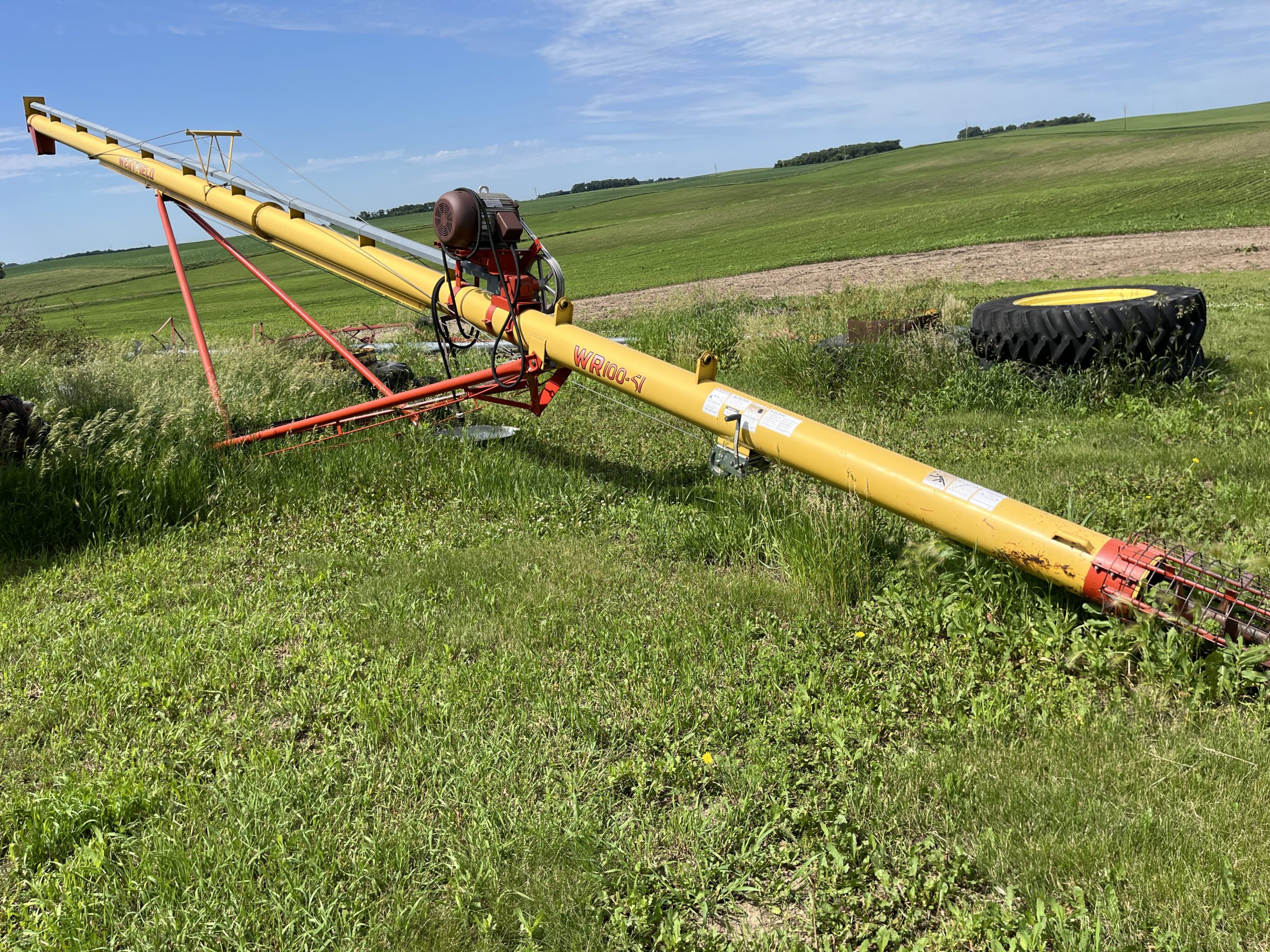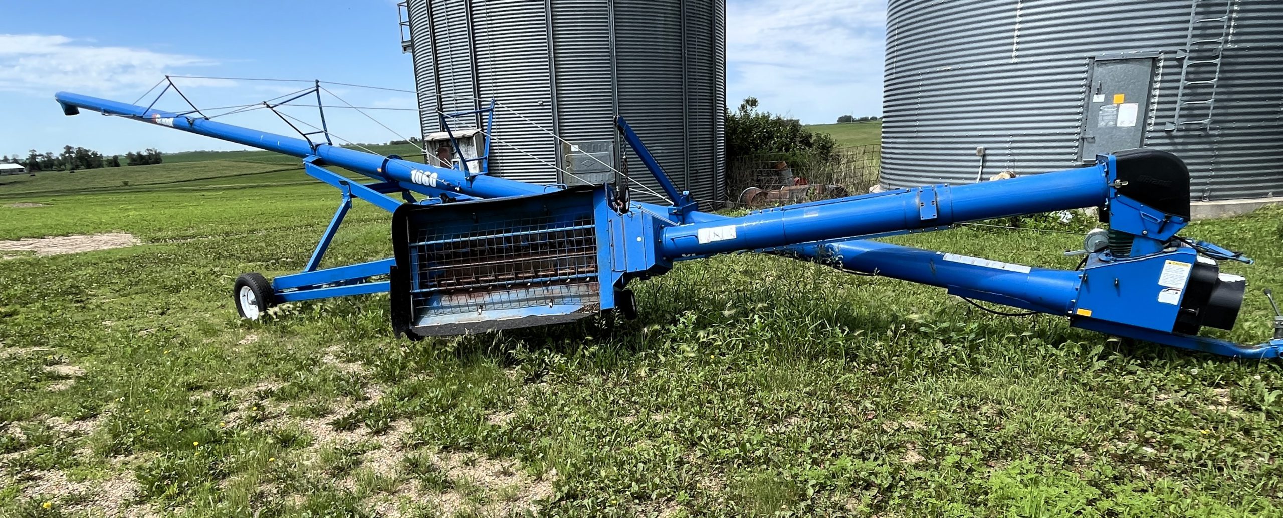 Combine/Harvest Equipment: 2004 JD 9560 combine, 2,634/1,659 hours, grain tank extension, 30.5-32 tires, deep tooth chaffer, Touchset concave; JD 606C corn head, HH, good condition; JD 625 bean head, single point hyd.; Horst header cart, 4-wheel; Demco 650 gravity wagon; Brent 544 gravity wagon; 540 gravity wagon; Westfield 100-51 auger, electric motor, nice; Brandt 1060 auger, hopper, salvage due to auger being bent; Chevy C50 grain truck, not running.