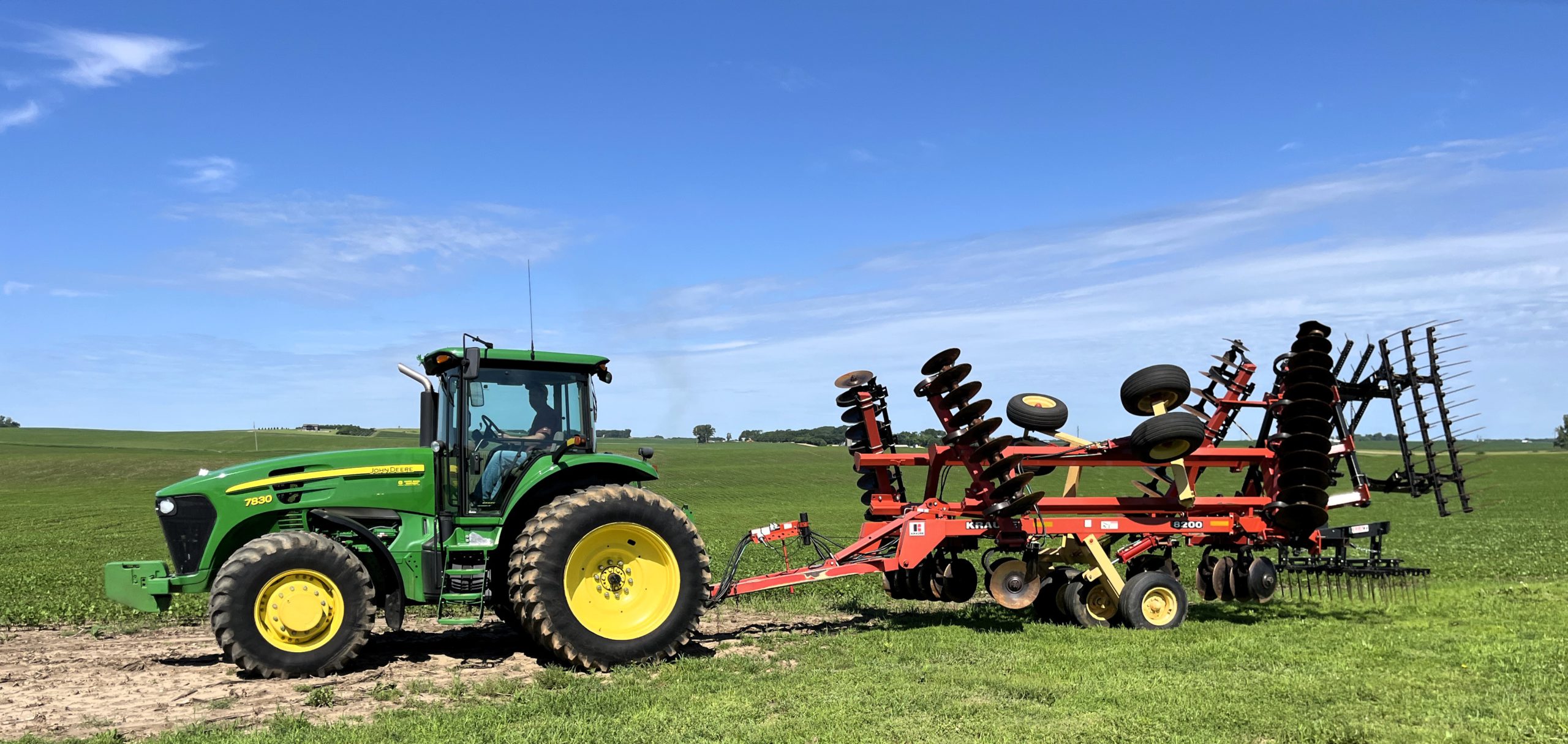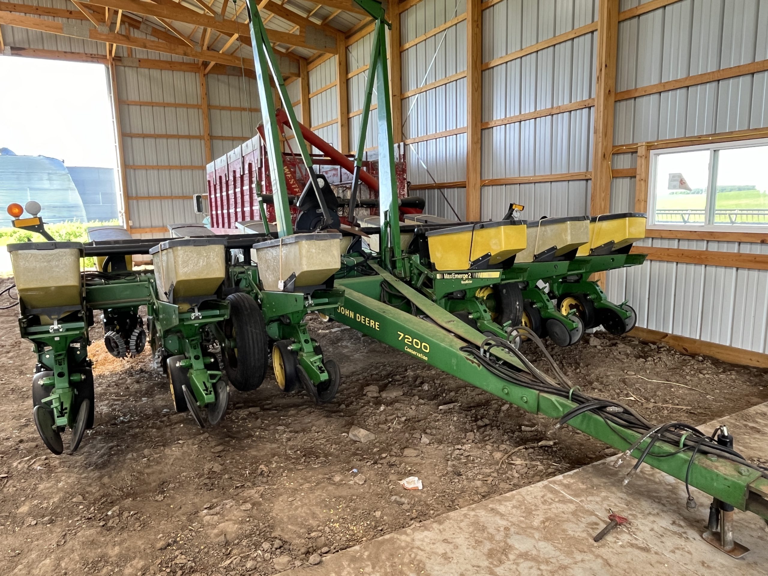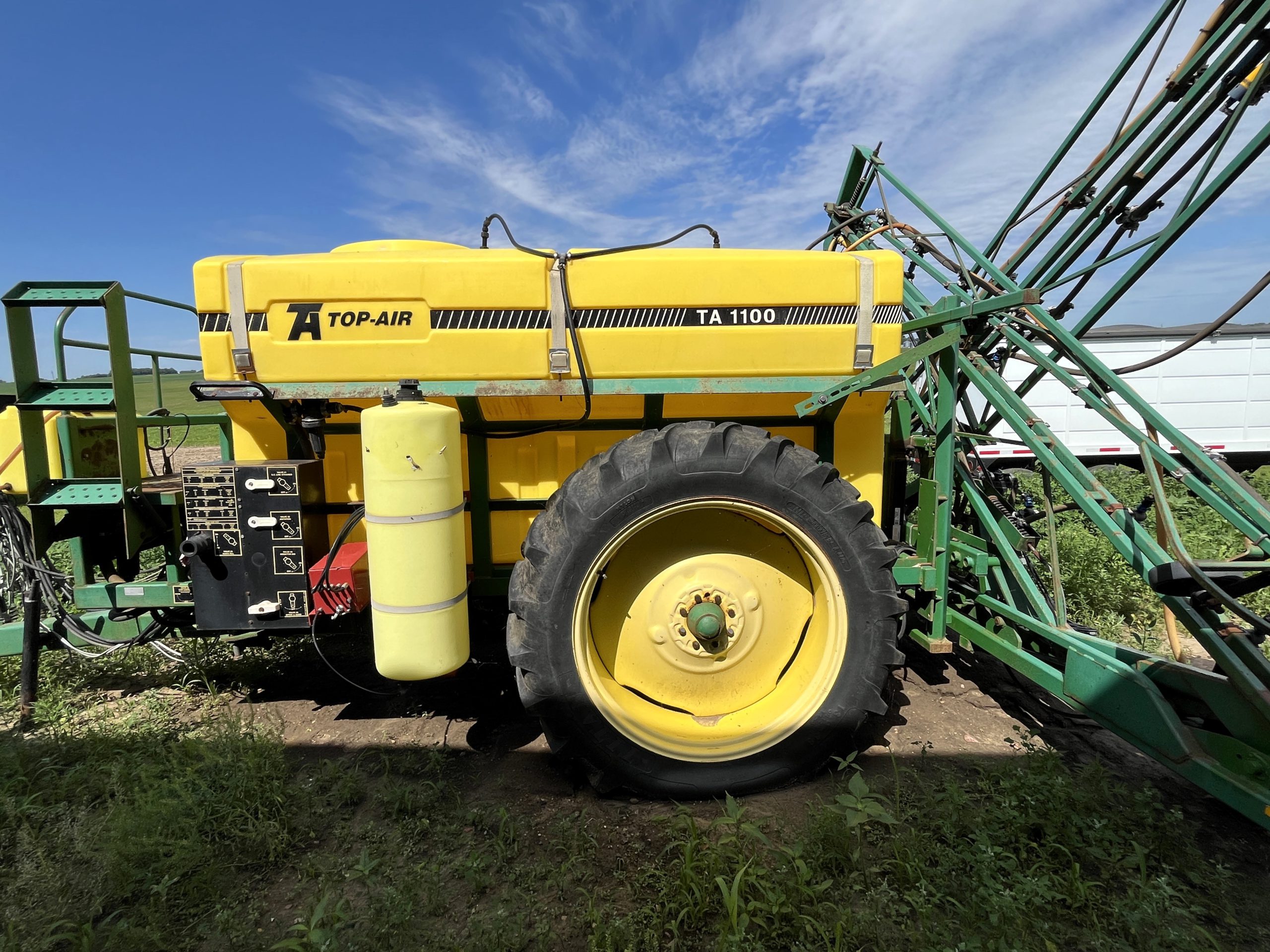 Farm Equipment: Krause 8200 disk, 22’, drag, front blades 20 ½ ’’, rear blades 21 ¼’’, nice; John Deere 7200 12 row planter, folding, 30’’, trash whippers; Top Air TA1100 sprayer, 1100-gallon tank, hydraulic drive, 80 gallon fresh water tank.