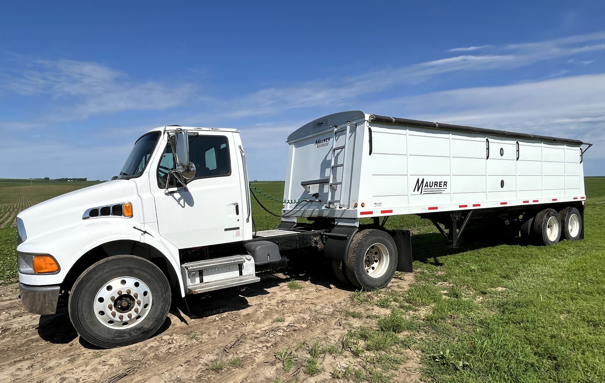 Semi/Trailer: 2008 Sterling semi, single axle, Cummins engine, 227,241 miles, automatic, 22.5 tires, nice; Maurer 28’ grain trailer, tarp, single hopper, 24.5 tires; nice.