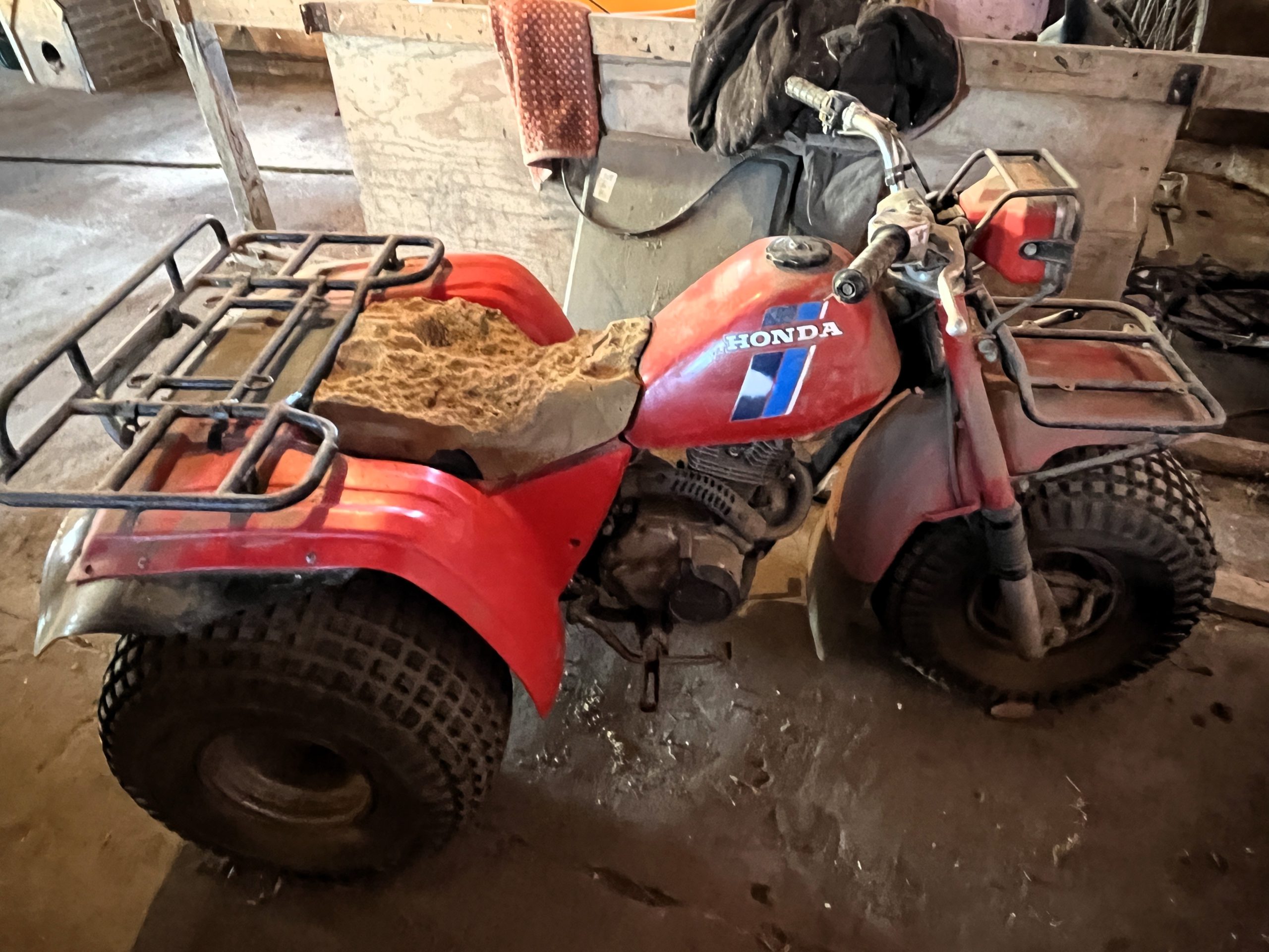 3-Wheeler: 1983 Honda ATC 200E, electric start, good tires, running, VIN: JH3TB0519DC282994; Atv ramp.