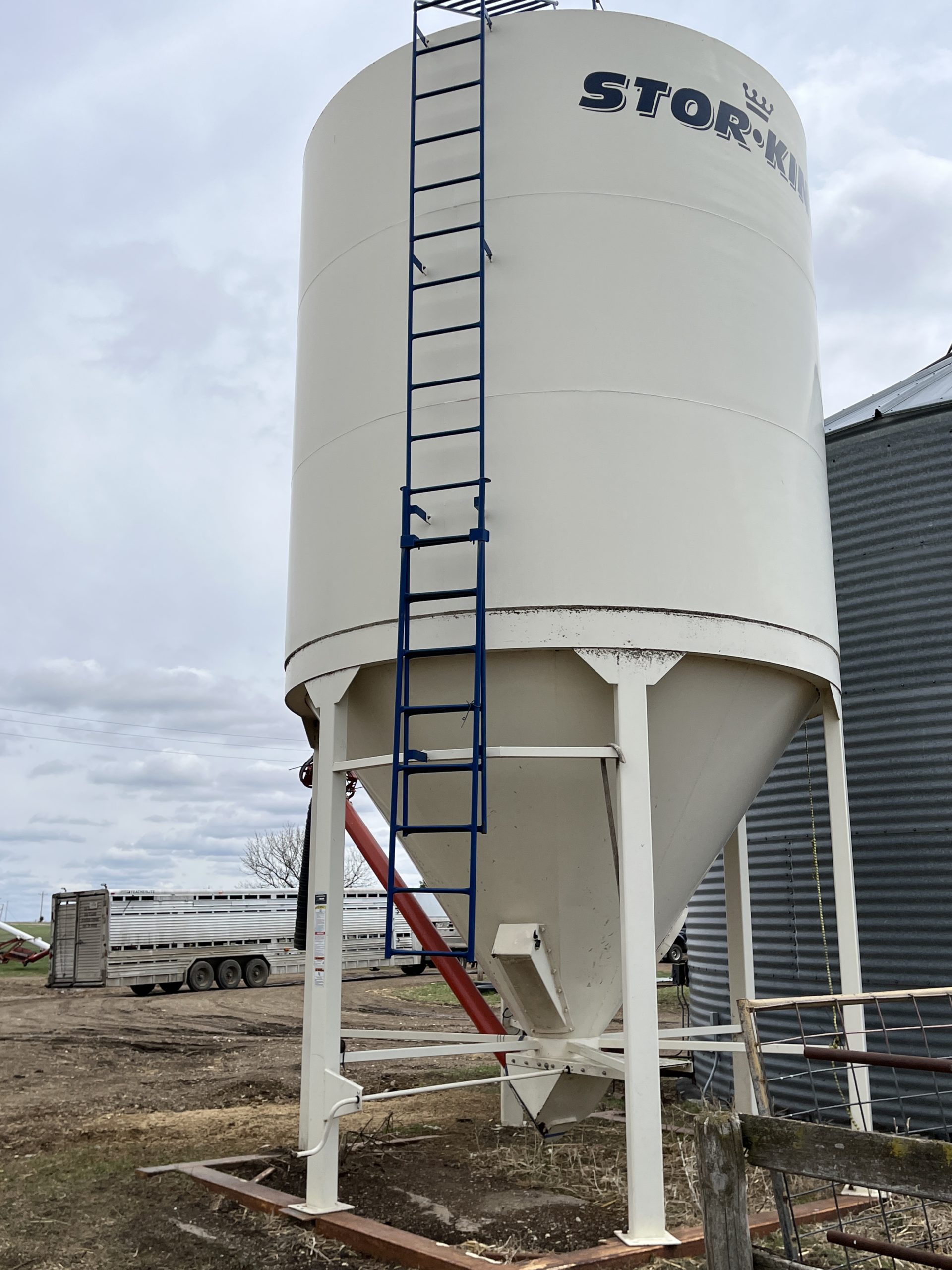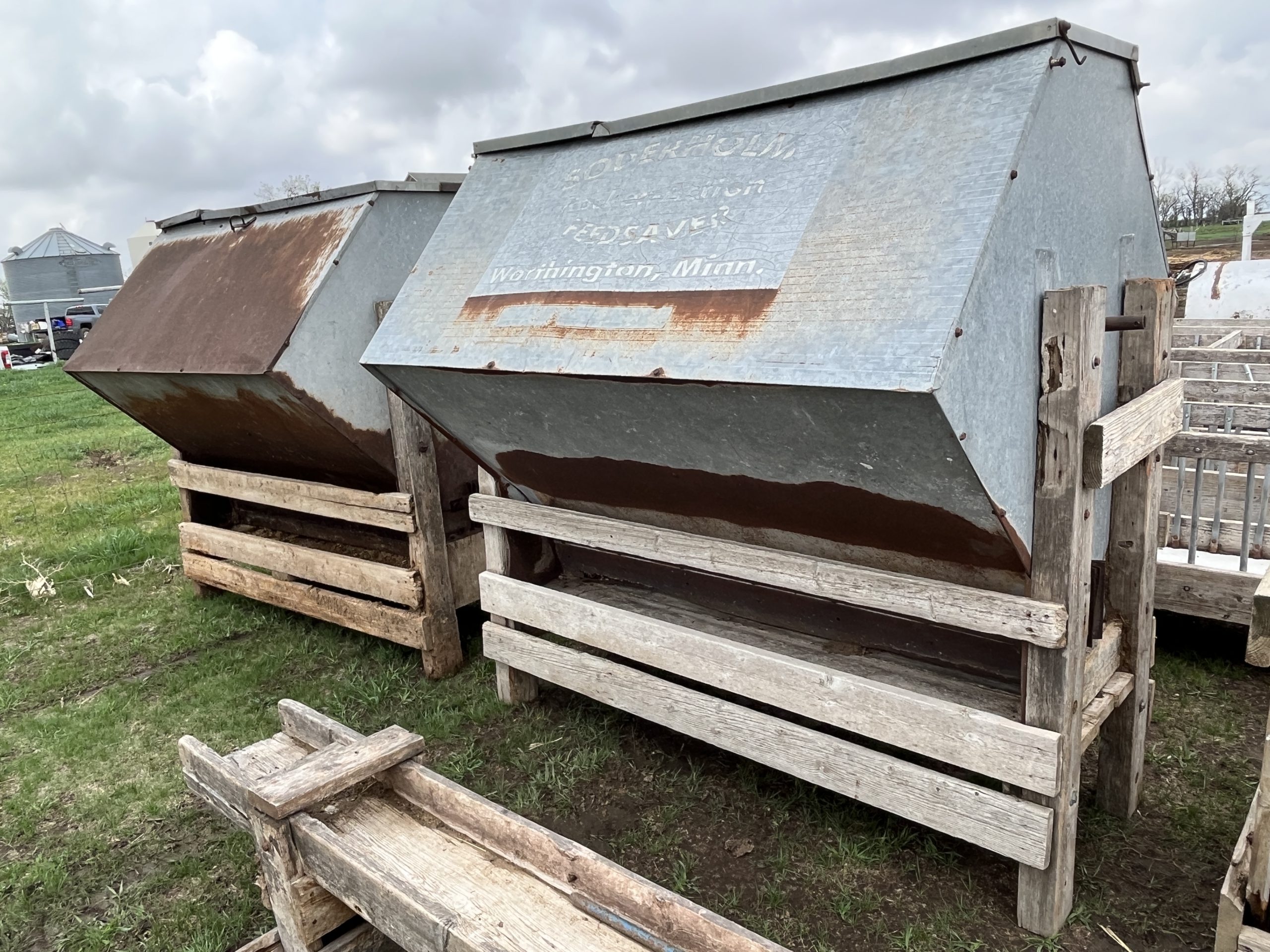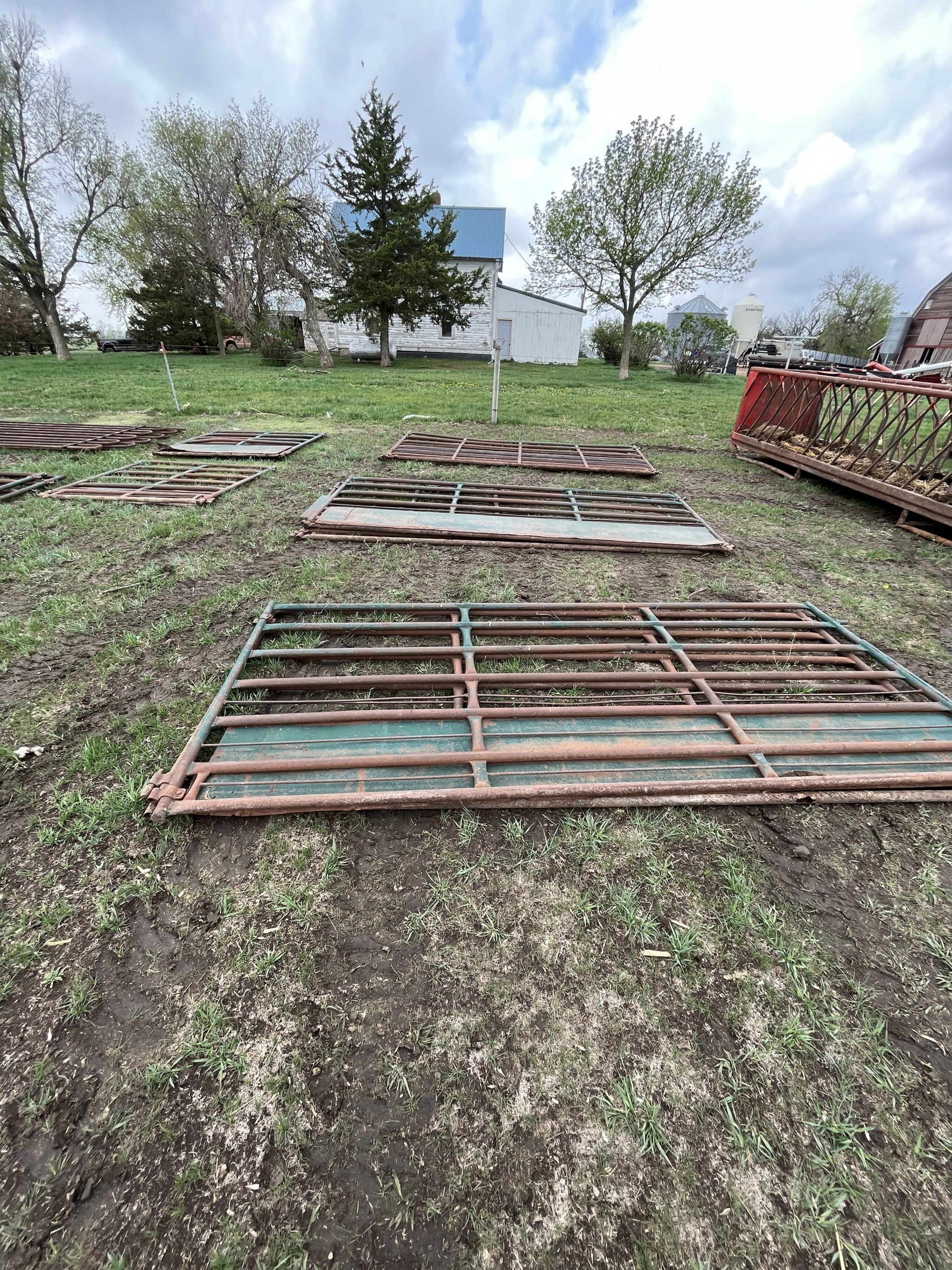 Livestock Equip/Misc: Meridan Store King Model # 1212 40 ton bulk bin; 6 ton bulk bin; new idea 217 manure spreader, new chain; (46) 20’ continuous fence panels; (4) walk through gates; (10) 16’ gates; (11) 14’ cattle gates; (12) Rural