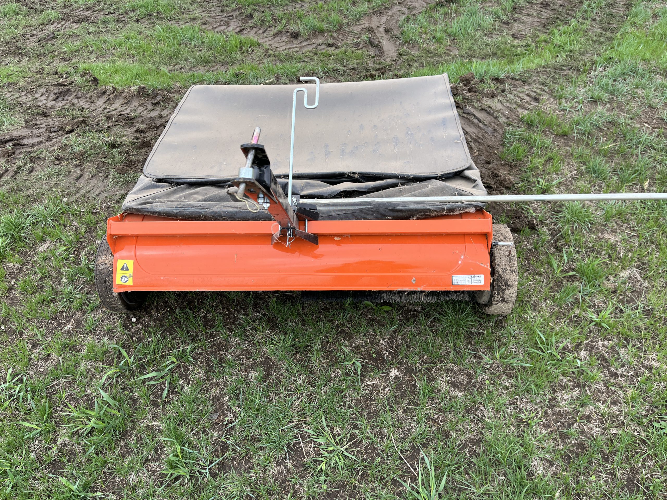 84” 3pt rear discharge finish mower, nice; 48″ Agri-fab lawn sweeper.