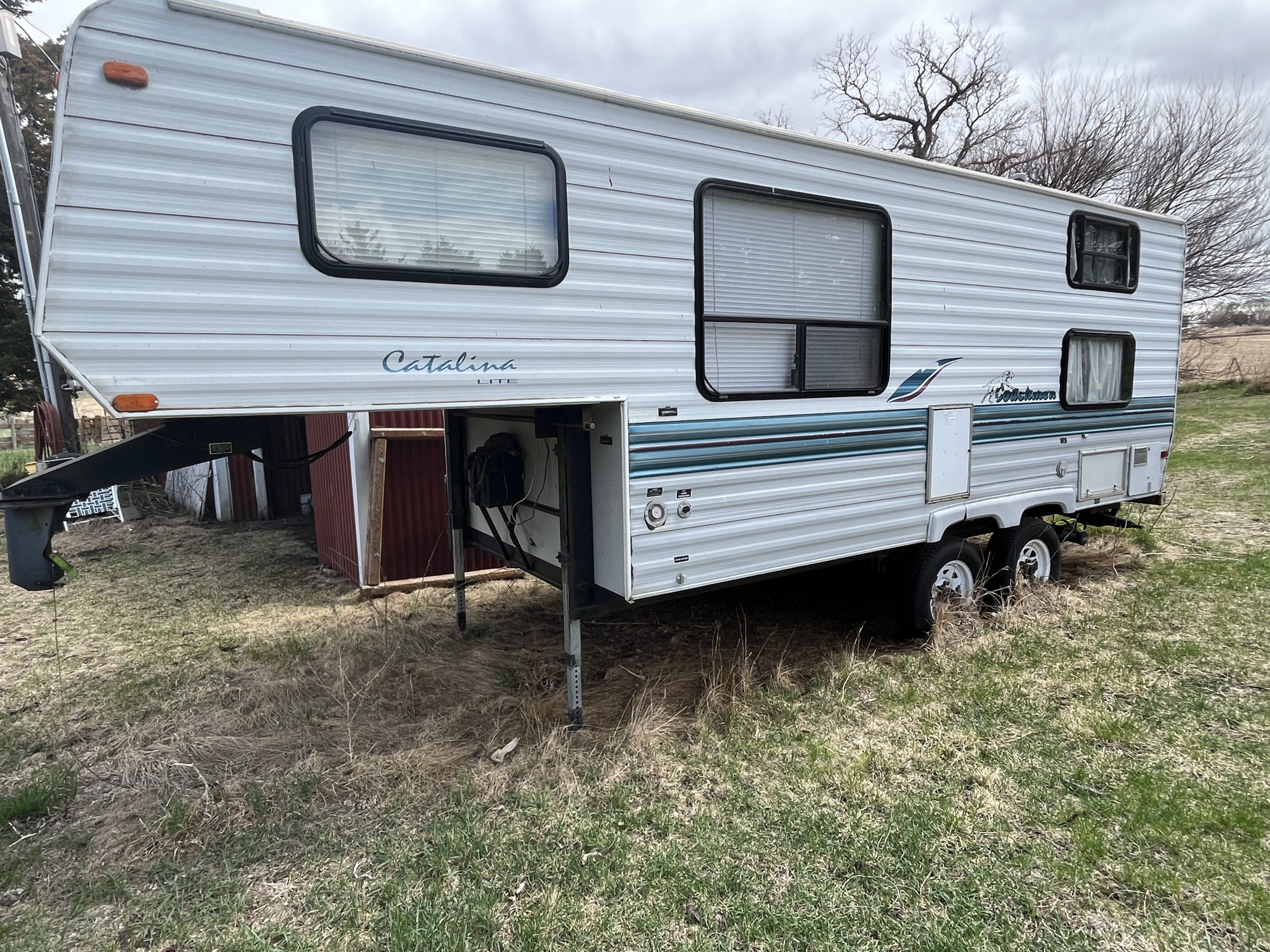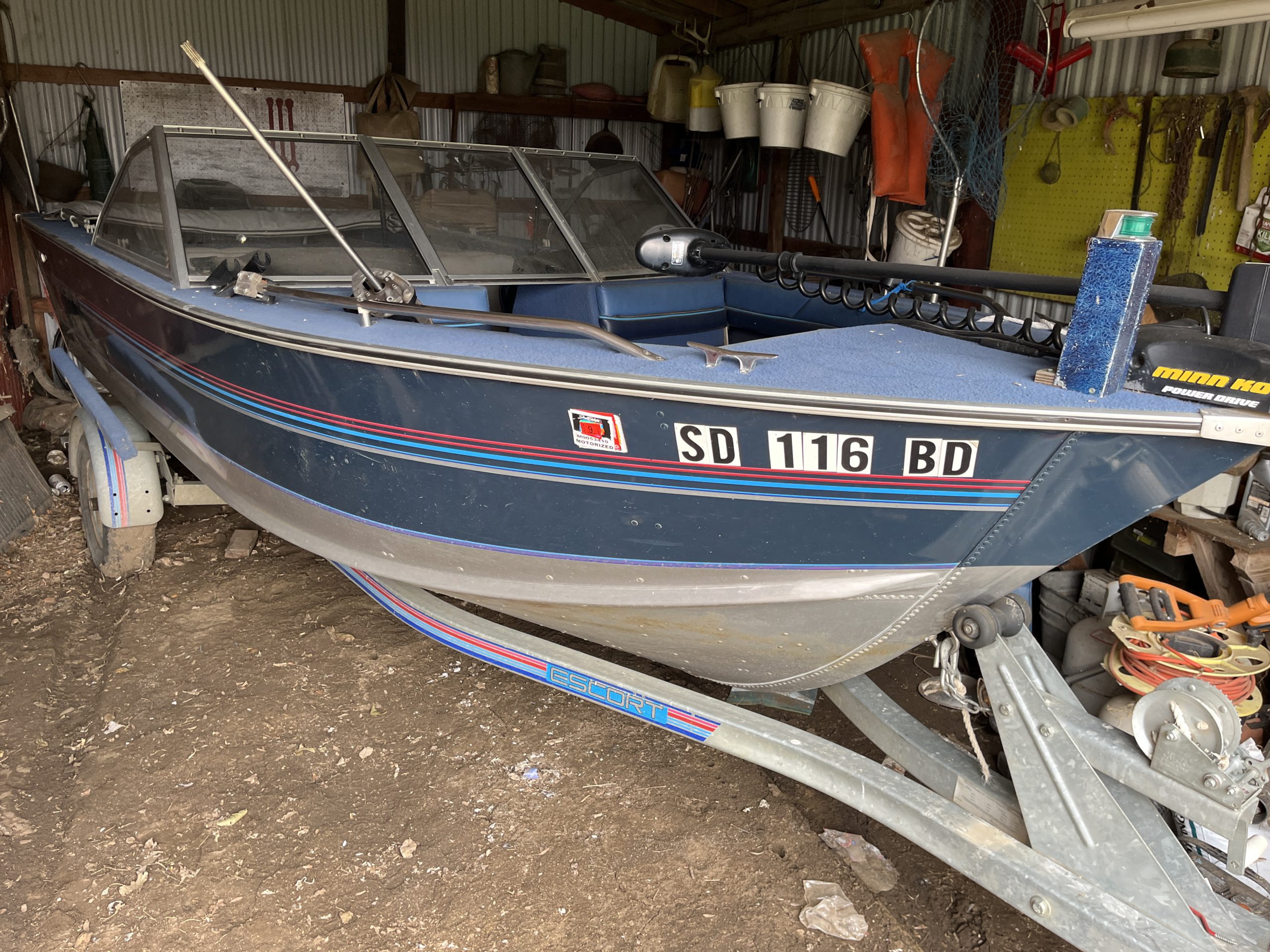 Pickup/Campers/Boat/Motorcycles: 2014 Ford F150, XLT, supercab, 98,505 miles, 3.5L EcoBoost, 4×4, cloth, 5th wheel plate, has a salvage title, owner purchased truck with 40,000 miles, VIN: 1FTFX1ET6EFC58476; 1996 Coachmen Catalina Lite Camper, 25’, 5th wheel, awning; 1988 Blue Fin Sportsman Boat, 17.5’, 50hp motor, trailer; Pickup box camper; Yamaha 80 motorcycle; Homemade go cart; Minibike.