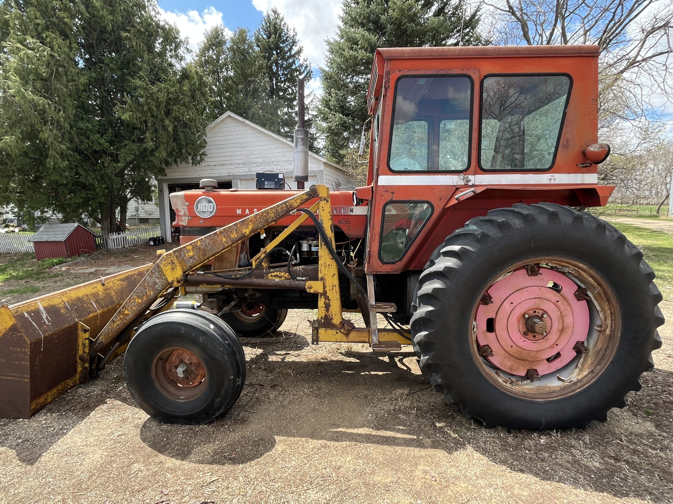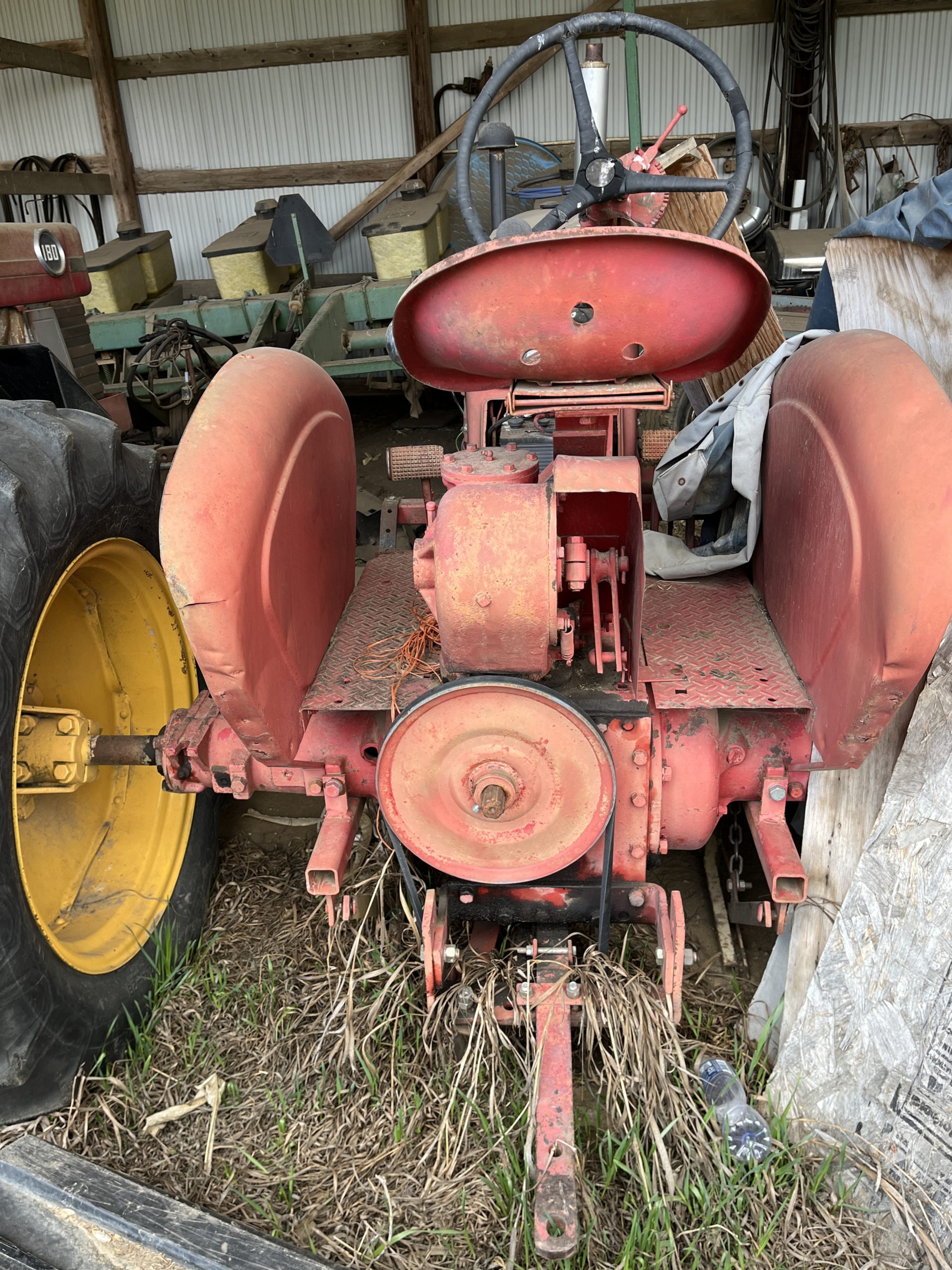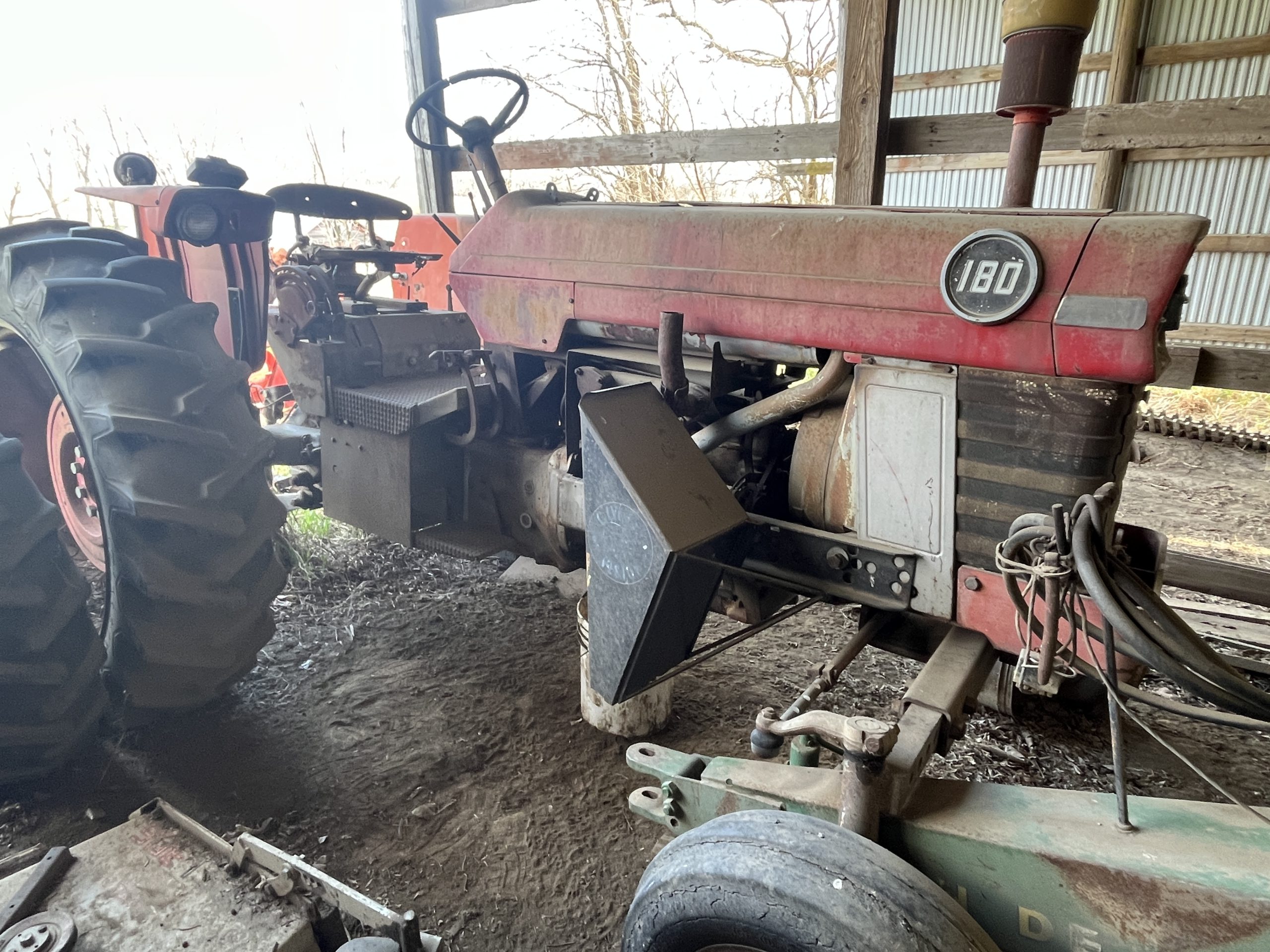 Tractors: MF 1100 Tractor, shows 8,676 hrs., diesel, cab, 3pt, sold with Miller loader; MF 180, wf, gas, not running; 1948 MH 20, nf, gas, Woods belly mower.