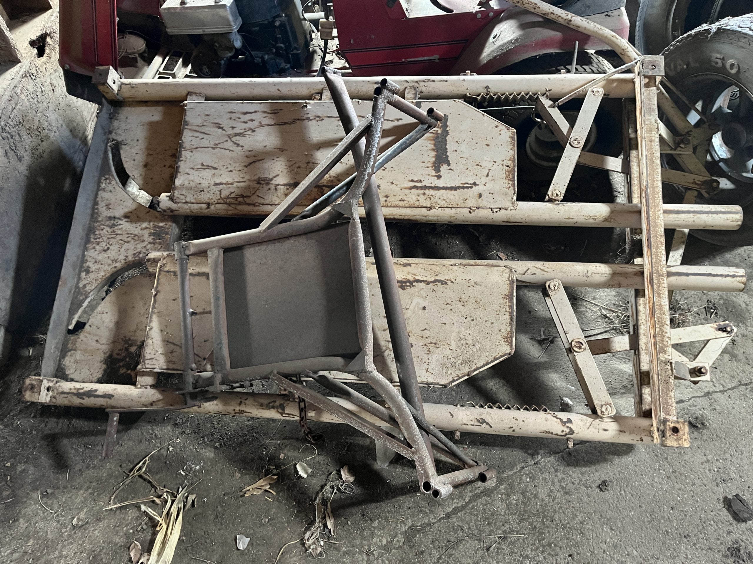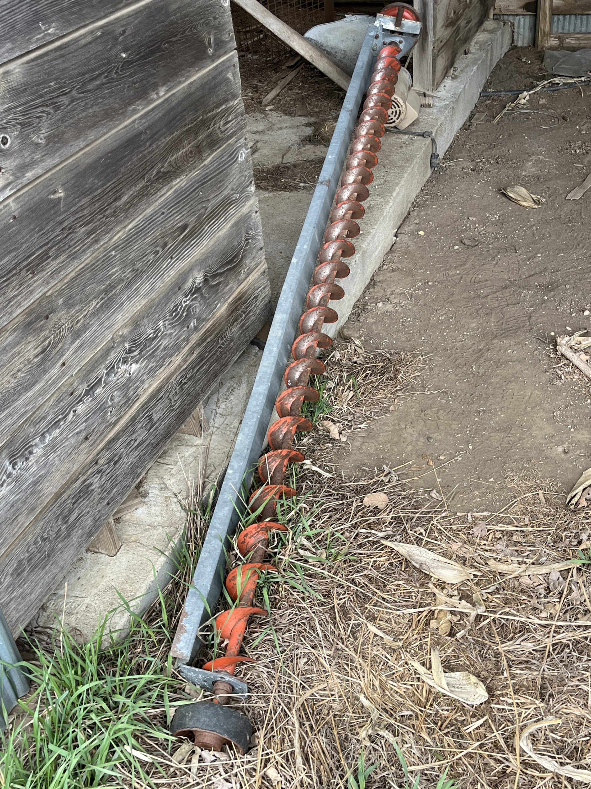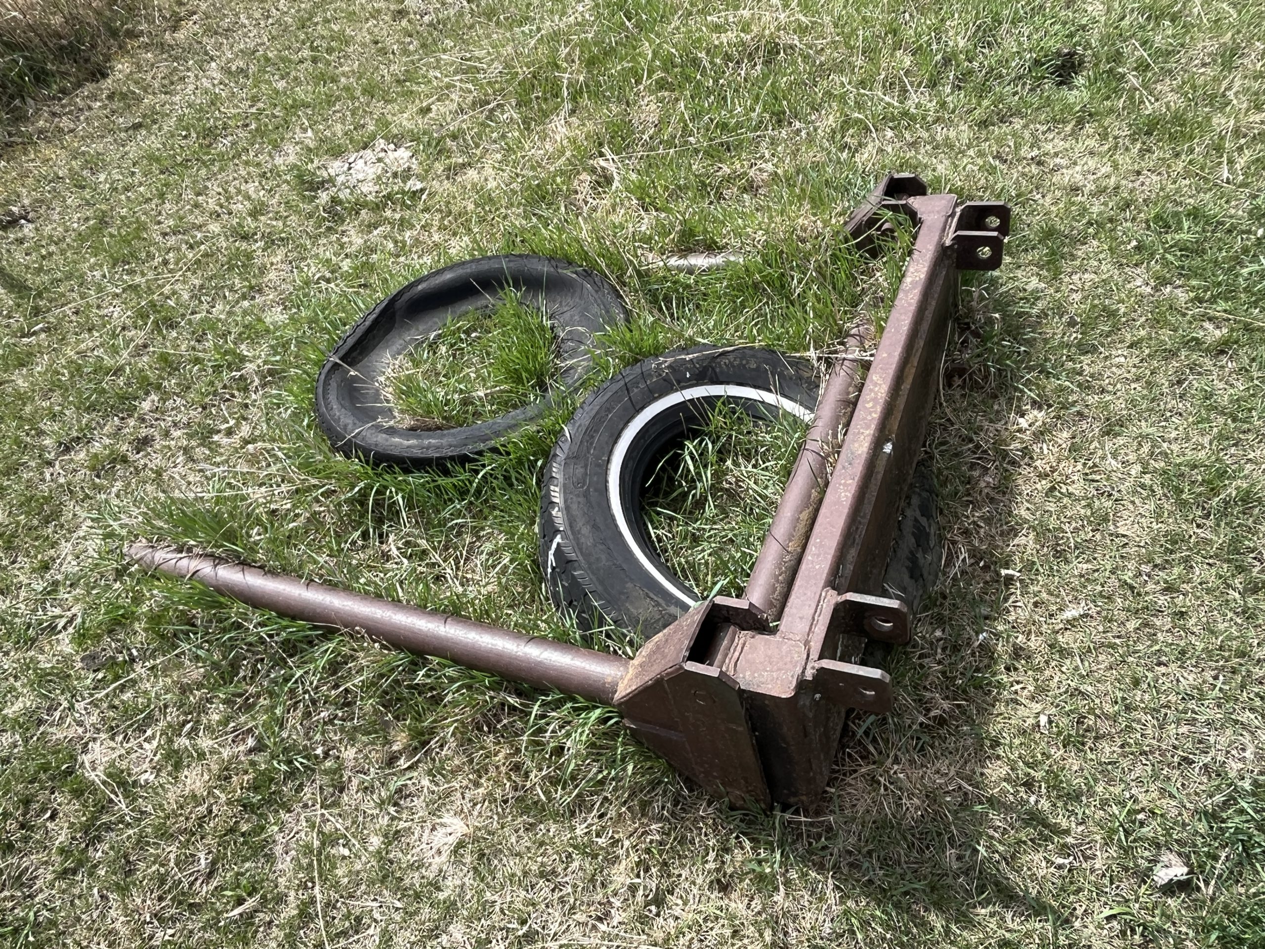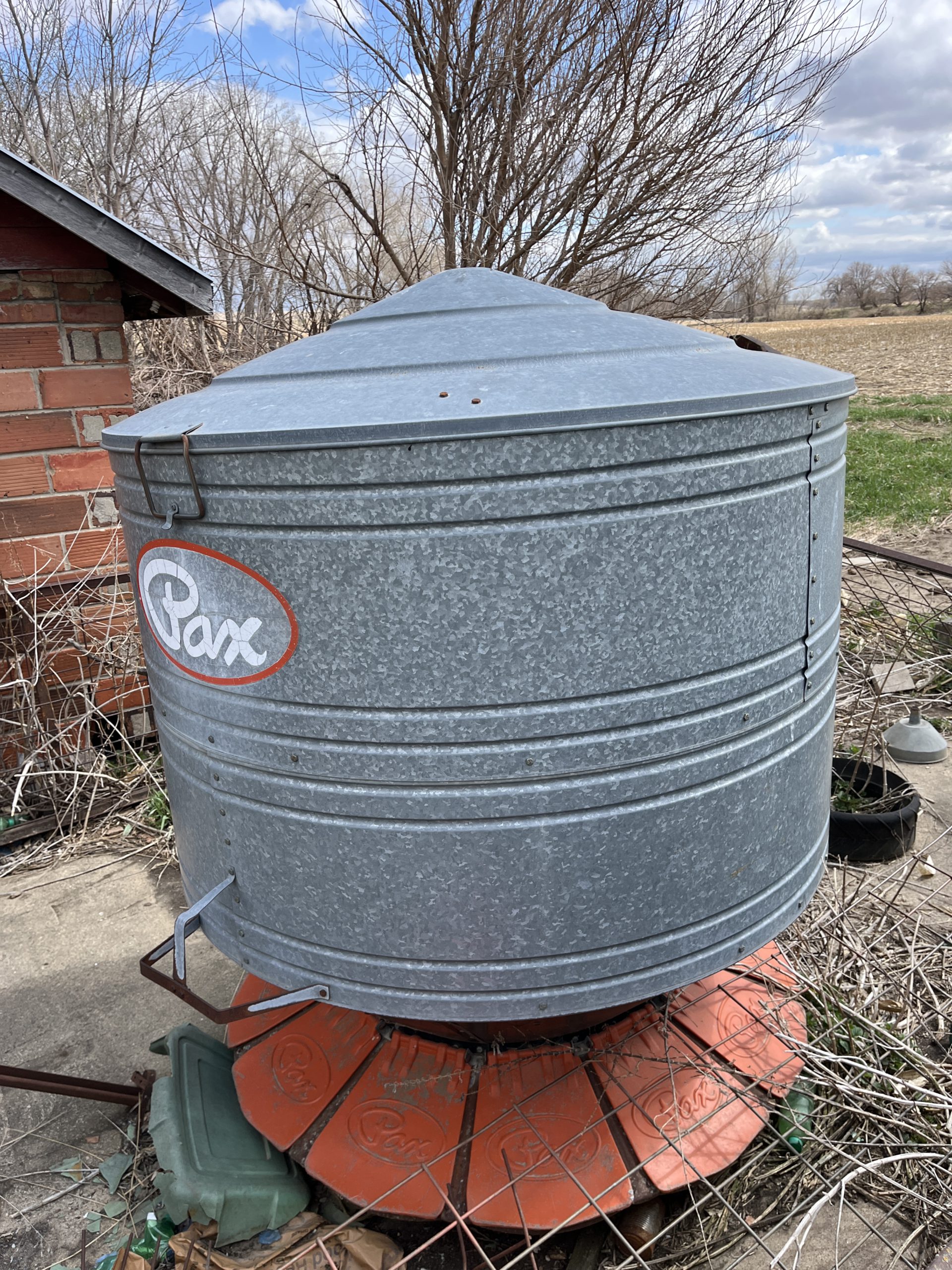 Farm Misc: 250-gal pickup water tank; NIB gas powered post hole digger; Pax hog feeder, good; Pallet racking; Foremost head gate; Dehorning table; 21’ bin sweep; Tractor chains; Diesel & gas fuel tanks, stands; 110-gal diesel transfer tank; transfer pump; log chains; Barb wire; ATV garden disk & sprayer; Wood & steel posts; plus more.