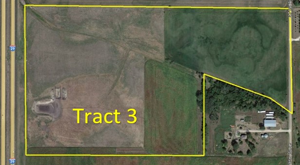 We will sell the following real estate at public auction at the Tract 2 land site located 10 miles south of Sioux Falls, SD on I-29 to the Worthing-Lennox Exit #64, ½ mile east on 280th St. and 1 mile north on 471st St. or from the west side of Worthing, SD, ½ mile west on 280th St. and 1 mile north on 471st St.