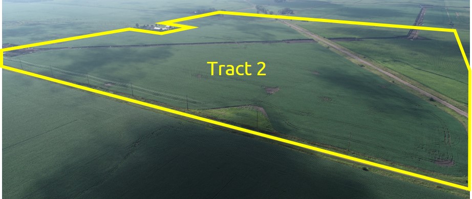 Tract 2: 149.28 +/- acres. NE ¼, except 6.72 acres RR ROW and the South 407’ of the North 1677’ of the