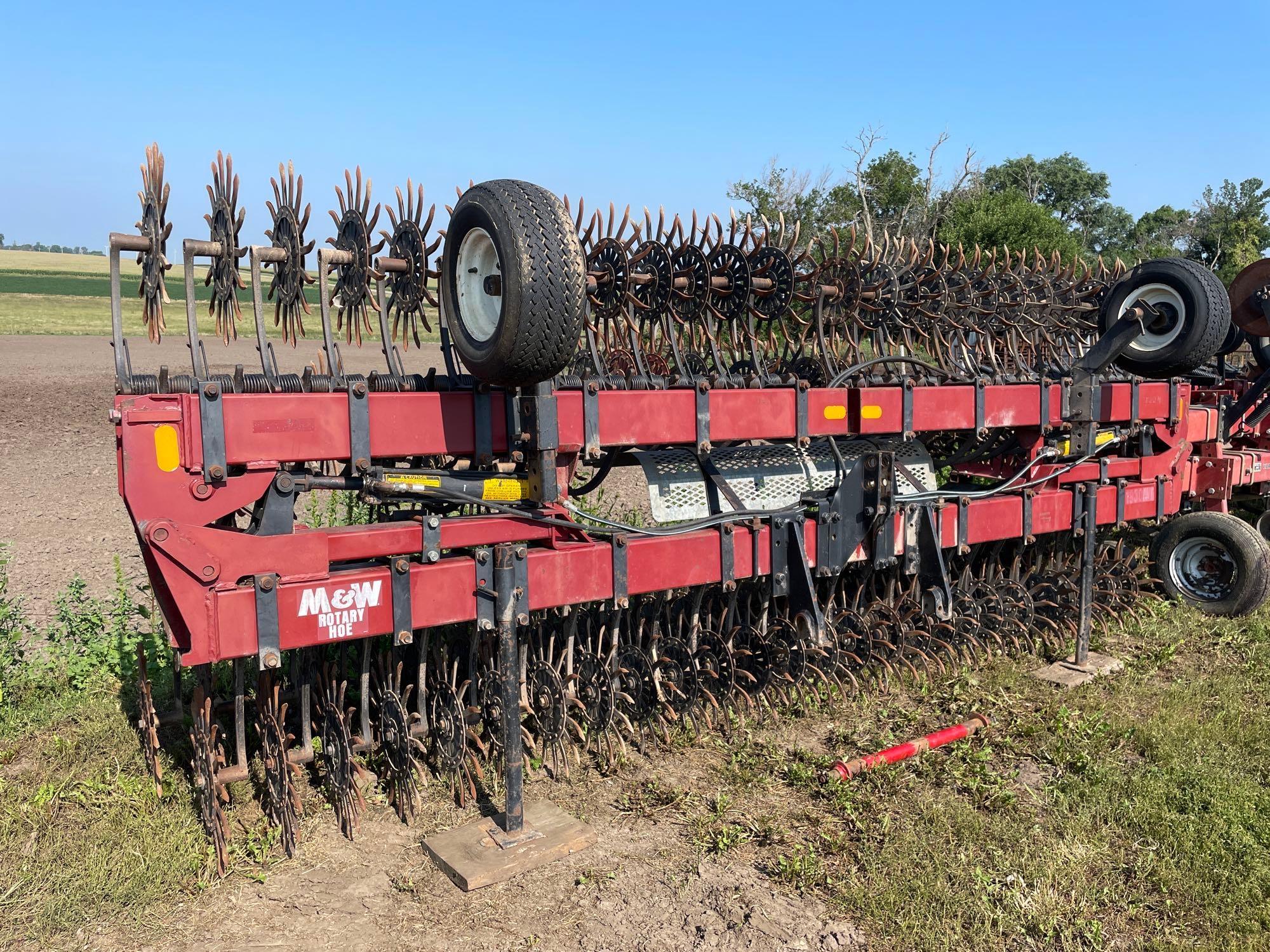 Cultivator/Plow/Drags/Hoe: M&W 12row30 3pt Rotary Hoe—model 1930MT: Case IH 1830 12row30 3pt Vibra shank Cultivator-w/ shields: 28ft pull type drag—hyd fold, 3 section: International 710 6 bottom plow:—2pt, clod buster bar: Nobles 9 Section drag—needs some work: 3pt 4 Section 14ft Rotary Hoe: