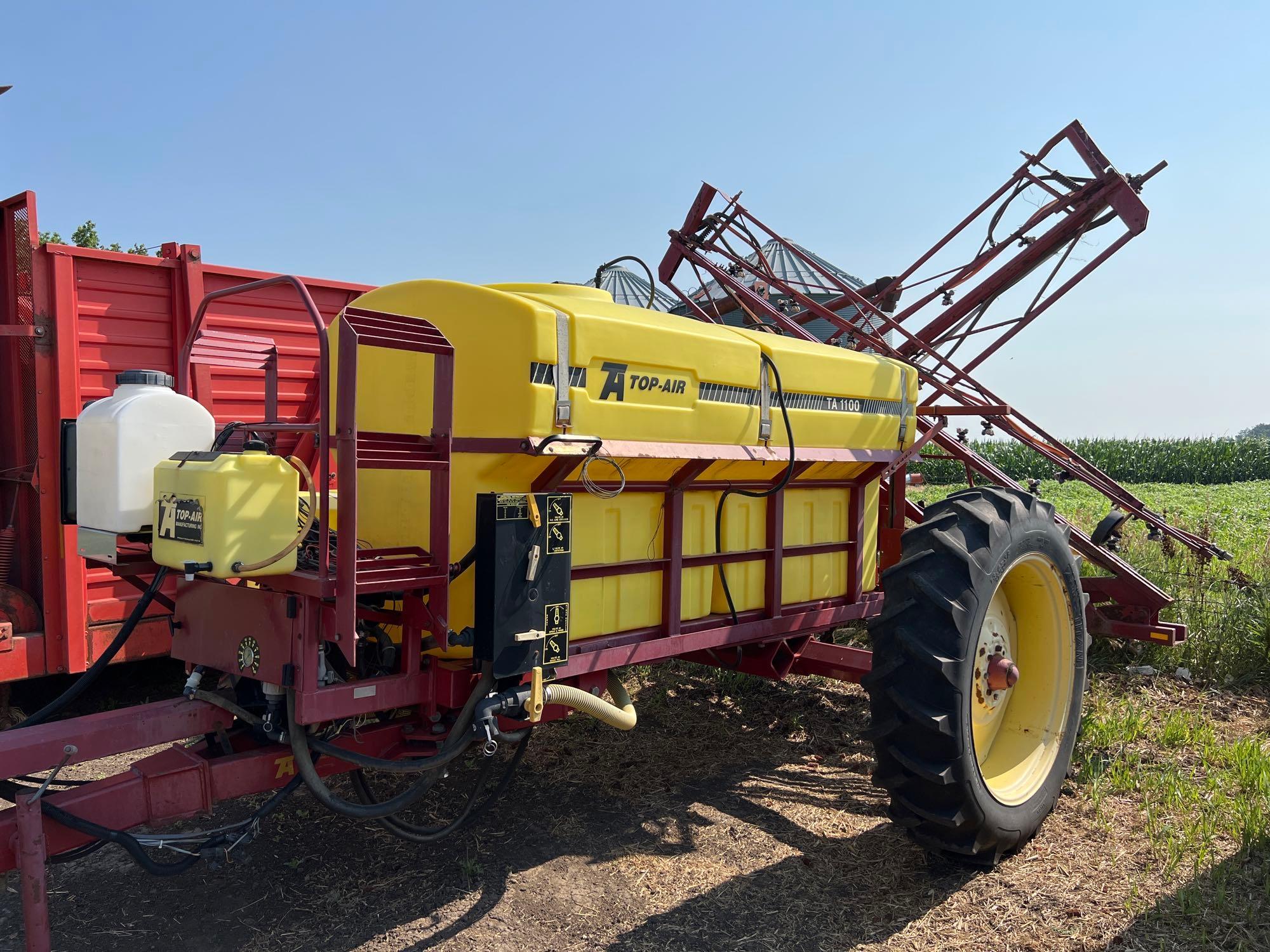 Sprayers: Top Air TA1100 Gallon pull type sprayer—SN-14020, 13.6-38 tires, 540 pto, MT3000 sprayer control, 60ft booms, triple nozzle body, 80 gallon rinse tank, pump works, sprayer was not tested: 500 gallon pull type sprayer-hyd pump 30ft booms (not mounted): Fast 1000 gallon pull type supply tank—no booms, hyd pump, 16.9-24 tires: 2—500 gallon supply tanks mounted on a Dakon 6 bolt gear—8088 gear model, 5.0HP Honda transfer pump: