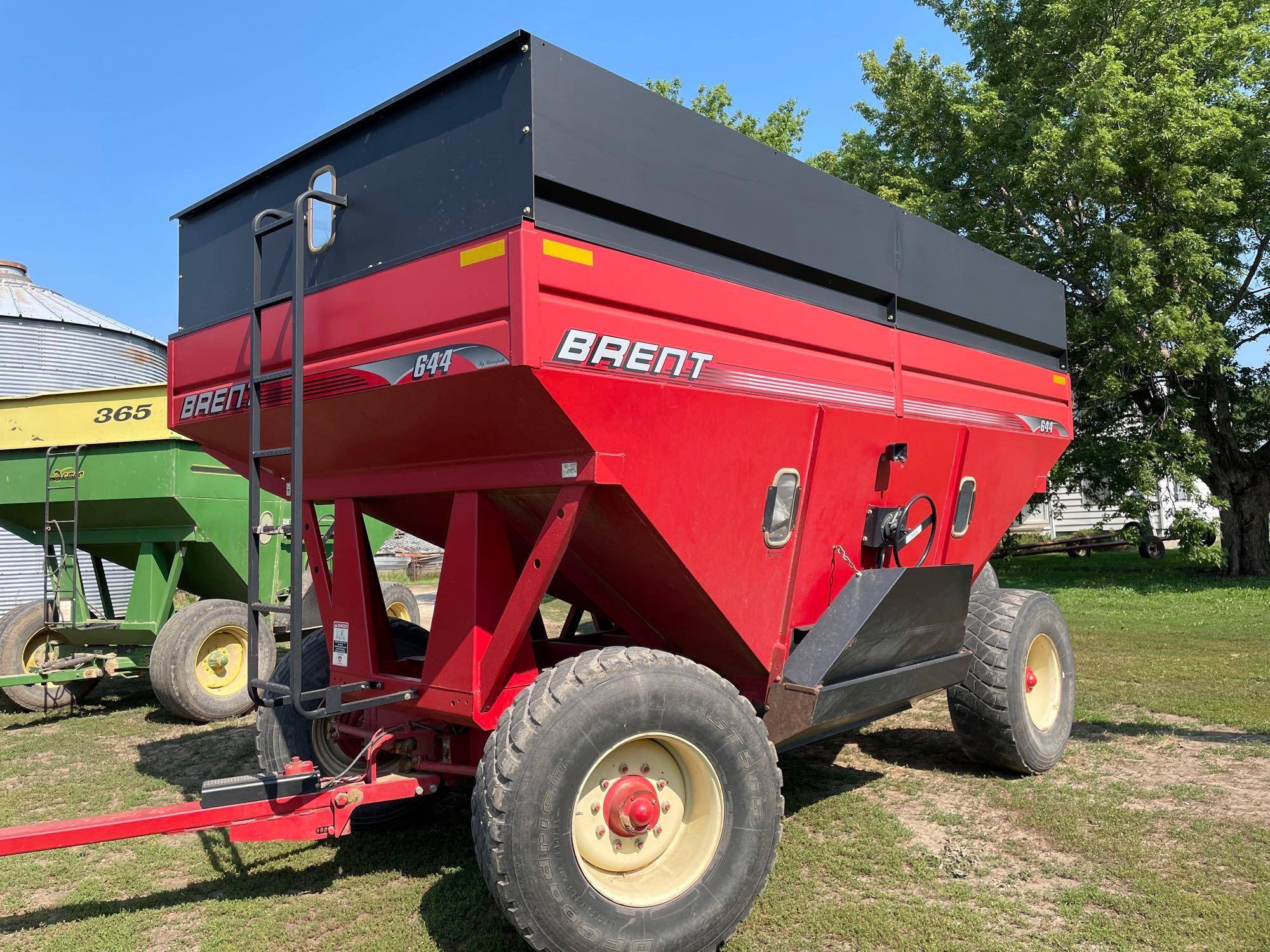 Gravity Wagons: –3—Brent 644 Gravity Wagons—445/65R22.5 tires, front/rear brakes, lights: Demco 365bu Gravity Wagon—385/65R22.5 tires, lights, SN-96259: Dakon Gravity Wagon w/ Seed Auger—self contained hyd, sudenga auger, Honda 270 gas eng., Westendorf 8 ton gear, 10.00-15 tires: