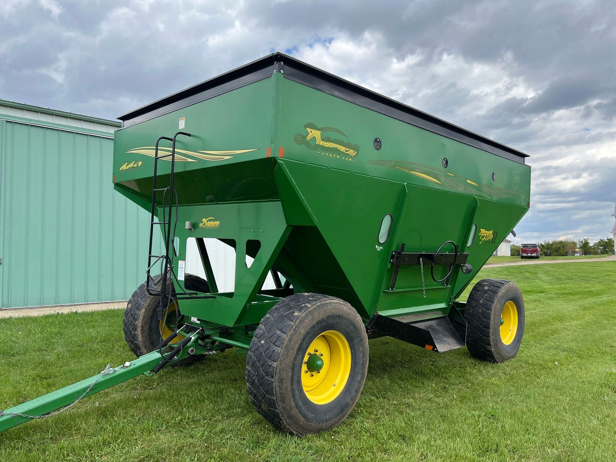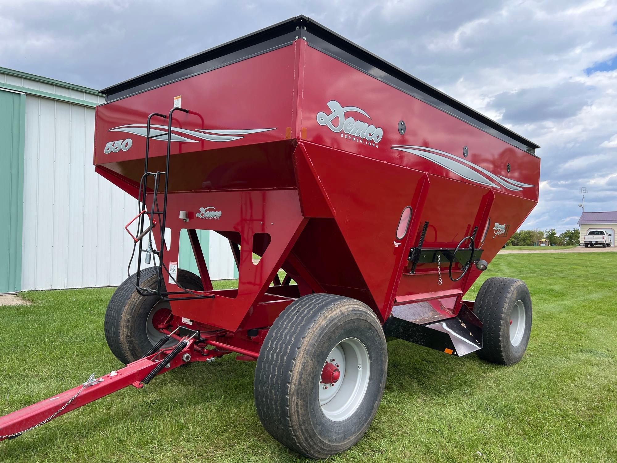 Gravity Wagons: Demco Posi Flow II 550bu Gravity Wagon—445/65R22.5 tires, lights, SN-40034, rear brakes, red: Demco 550bu. Posi Flow Series II Gravity Wagon—SN-49615, 445/65R22.5 tires, lights, rear brakes, green:
