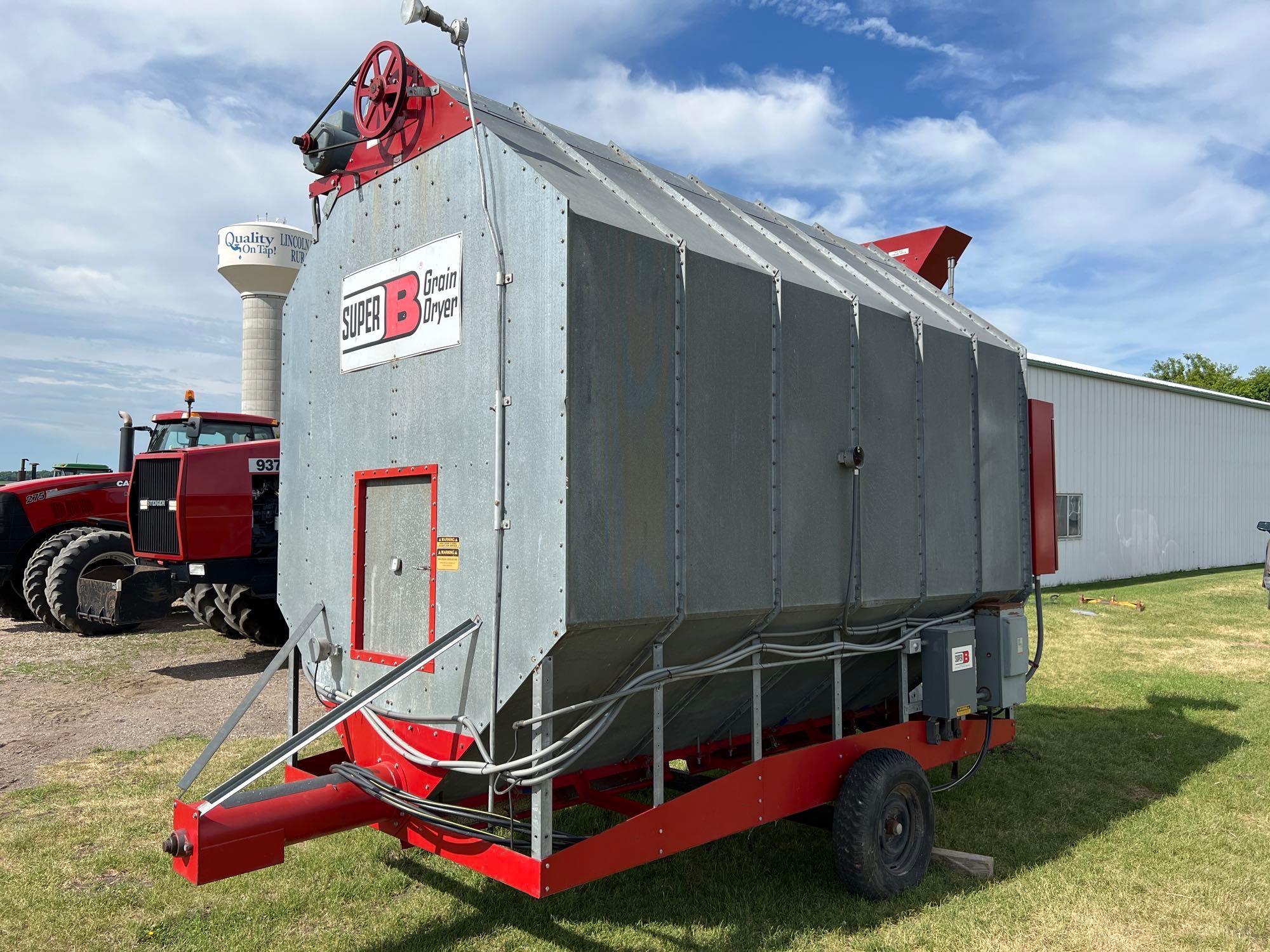 Grain Dryer: Super B 600 Grain Dryer—portable, holds approx. 230bu, SN-121210881110, 10HP blower motor, 230v, 5hp top auger, 3hp lower auger, shows 11,766 hours, always stored inside: