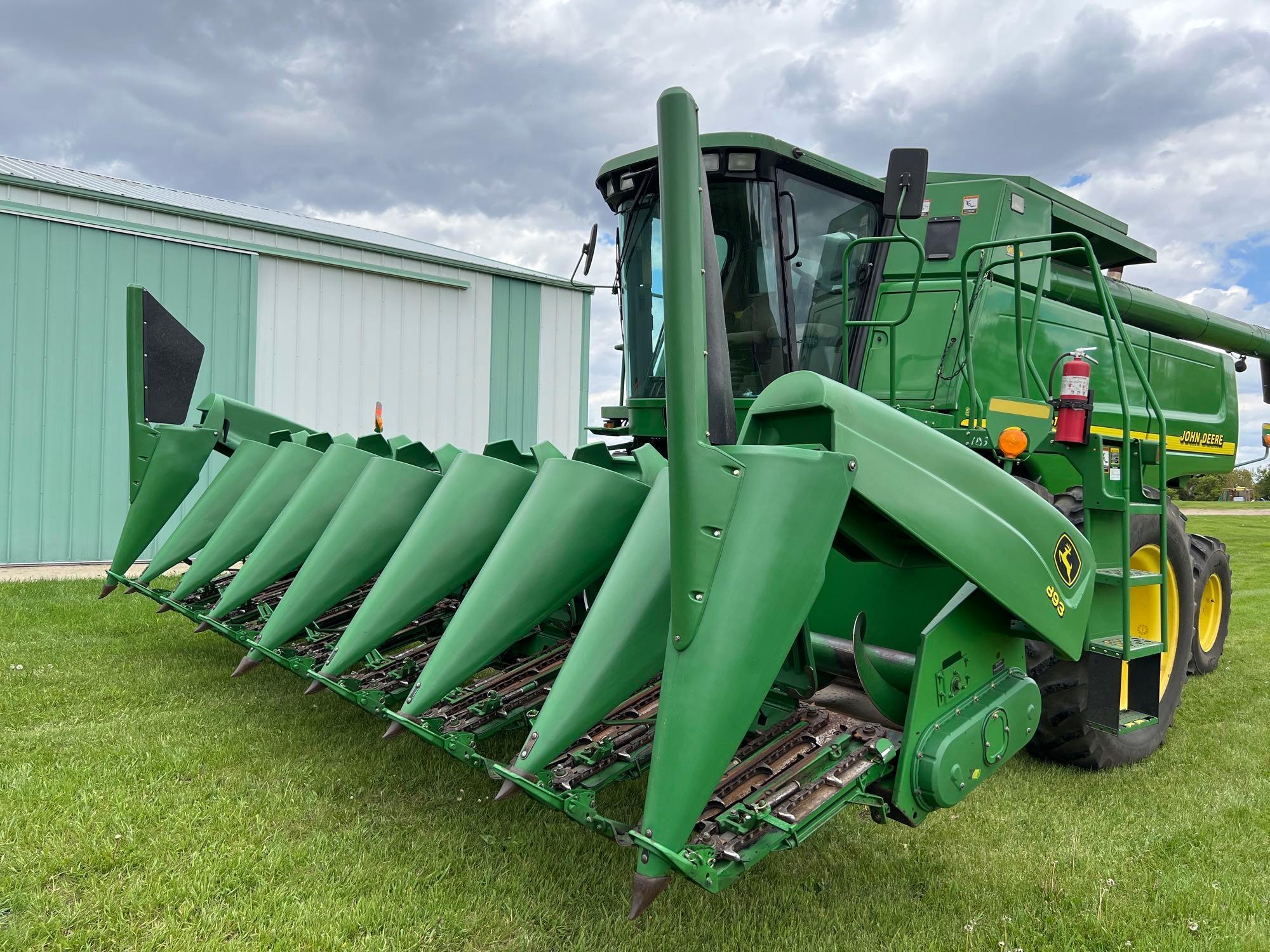 Combine: John Deere 9650 STS Combine—SN-H09650S691033, shows 4161 eng hours, 2773 sep hours, Maurer bin extension, 18.4R42 front tires w/ duals, 420/85R26 rear tires, 9750 front lift cylinders, combine was inspected in fall of 2021 and any maintenance needed was completed: