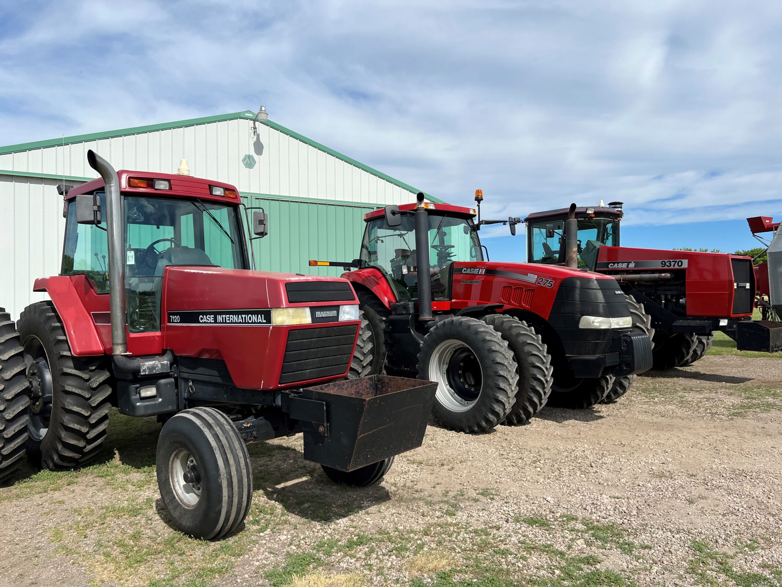 Tractors: 2009 Case IH 275 Magnum FWA Tractor—2nd Owner, SN-Z9RZ01949, shows 2700 hours, 8—49kg front weights, 380/84R34 front tires w/ duals(40-50%), 18.4R46 rear tires w/ duals(Tractor—90%, duals—20-30%), left hand reverser, 3 remotes, quick hitch, 1000 pto, buddy seat, heat, a/c, radio, auto steer ready: Case IH 7120 2wd Tractor-3rd Owner, SN-JJA0031668, shows 7525 hours, rock box, 480/80R42 rear tires w/ hub duals, 3 remotes, 540/1000 pto, heat, a/c, 18/4 powershift, tractor is equipped with a Raven steering wheel and Raven globe (No monitor is included with tractor): 1998 Case IH 9370 Steiger 4WD Tractor—SN-JEE0071913, shows 5465 hours, 4 remotes, bareback, Cummins N14 eng.(tuned to 400 HP), raven steering wheel with monitor: 710/70R38 tires, inside tires—approx. 90%, duals approx. 35%, rock box, heat, a/c, radio, fresh oil change:
