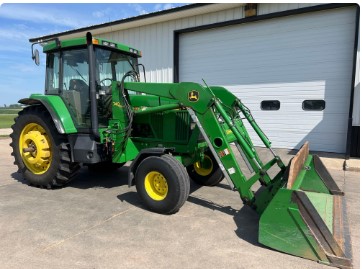 2002 John Deere 7410 2WD Tractor w/ Loader—1 Owner—SN:RW7410H074460, 4,400 original hours, front fenders, 11.00-16 front Firestone tires, 18.4R38 rear Firestone tires(90%), John Deere 740 loader, 8ft quick tach bucket, 2 sets of rear wheel weights, 540/1000 pto, 120HP, 2 wheel drive, 6.8L 6 cylinder diesel engine, 20 speed power quad transmission, radio, heat/ac, 3 remotes, 3pt, quick hitch, Super Sharp Tractor!!