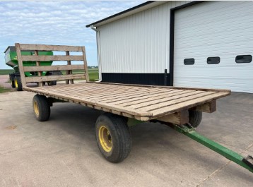 Flatbed: 8ft x 18ft Wood Flatbed—2” decking, 10 ton Demco gear, 12.5L-15 tires, 6 bolt running gear, ext tongue