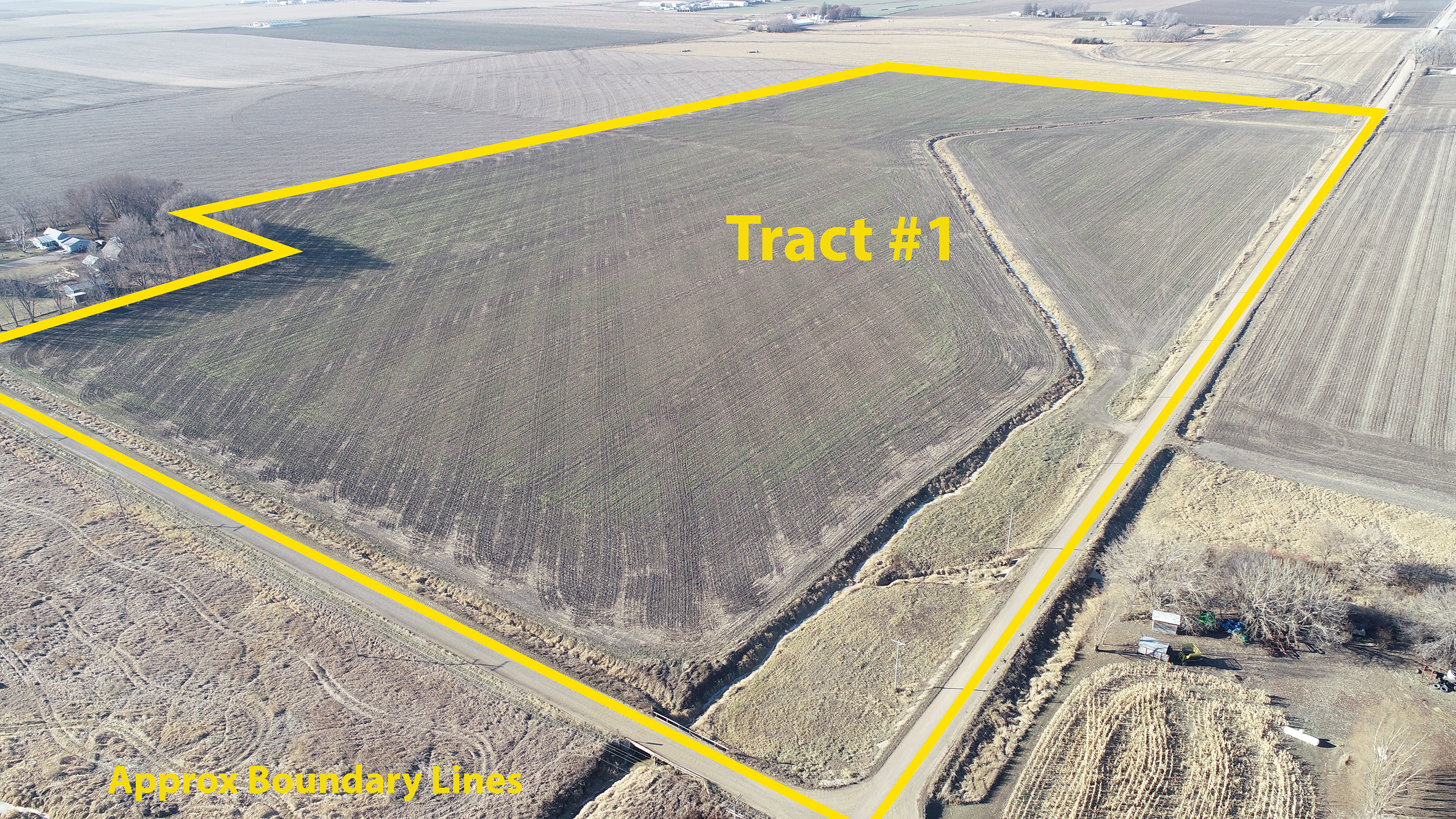Tract 1 Location: From the West edge of Hospers, IA go West on B40(400th St) for 2 1/2 miles to Kiwi Ave. then go 3 miles North on Kiwi Ave. to the farm OR from Newkirk, IA go North on Kingbird Ave for 3 miles to 370th St. then go 3/4 Mile East on 370th St. to the farm. Tract 1 is in the Southwest corner of the intersection of Kiwi Ave. and 370th ST.