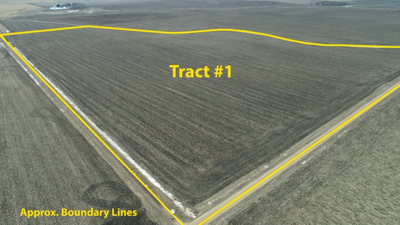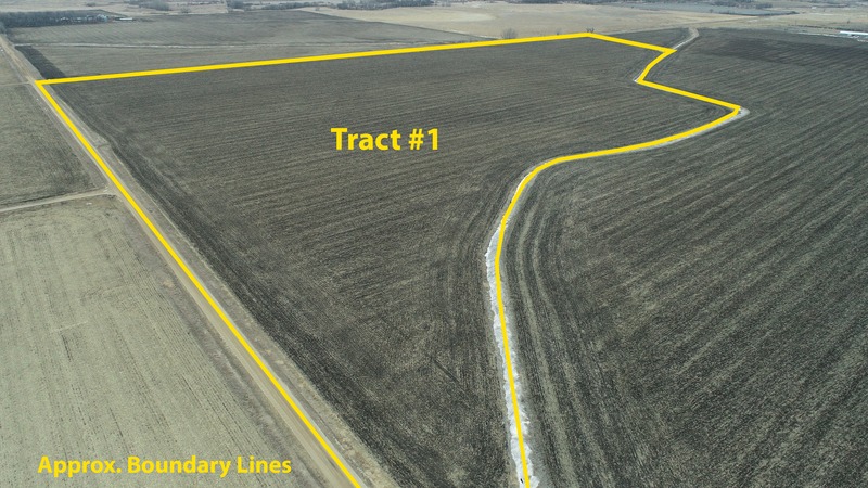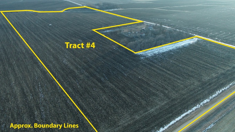 Method of sale: All of the properties will be offered in the choice method. The top successful bidder of the round of choice will have the option to select the tract of their choice, multiple tracts or all of the tracts. If all of the tracts are selected the auction will be over. If one or several of the tracts are selected then whichever tracts are still remaining will then be offered in the choice method again with the top successful bidder having the choice of selecting one of the remaining tracts, several of the remaining tracts or all of the remaining tracts. The auction will continue in this method until all of the tracts are sold. After a tract is sold in the round of choice it will not be available again to bid on. Once a tract is sold it will remain sold. There will be no combination of tracts of offered other than the opportunity to select multiple tracts in the rounds of choice. Auction of the property will be held at the site of the farmland.