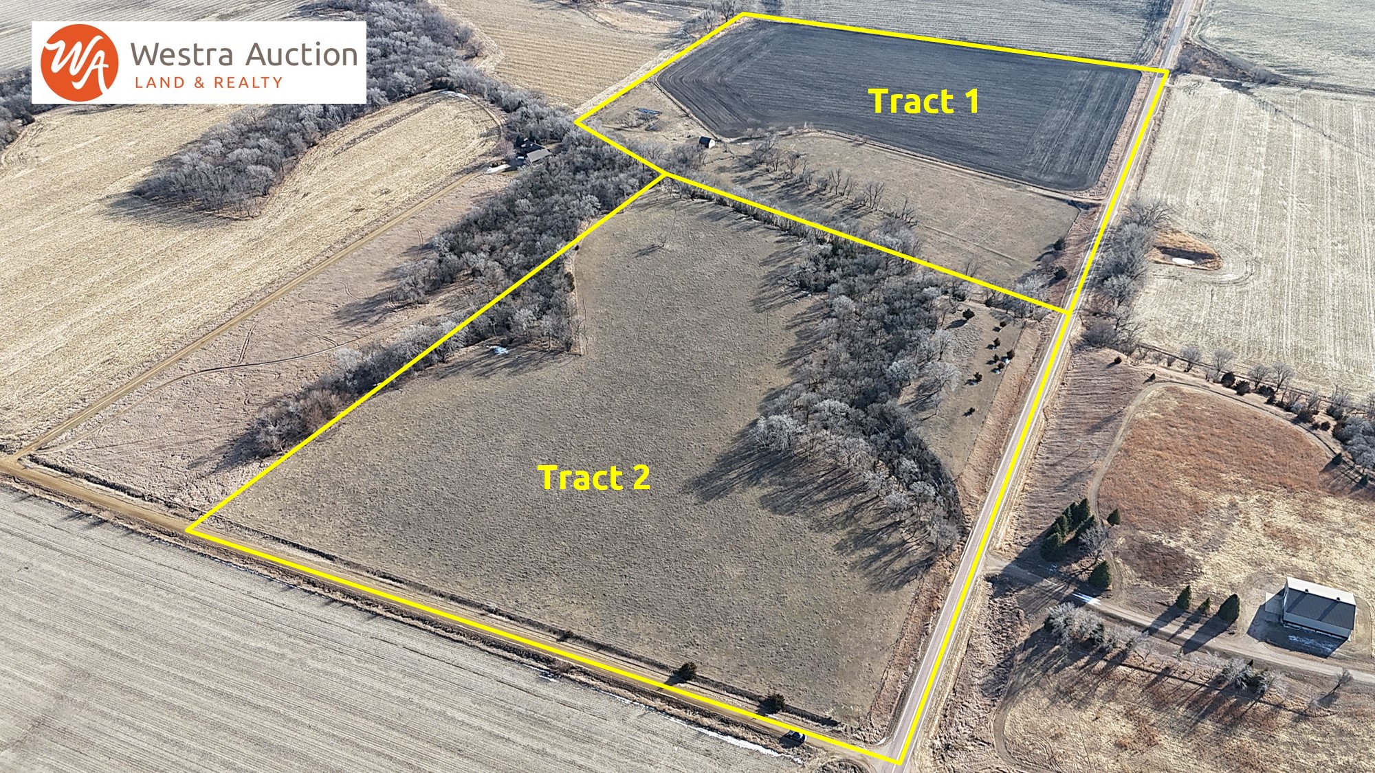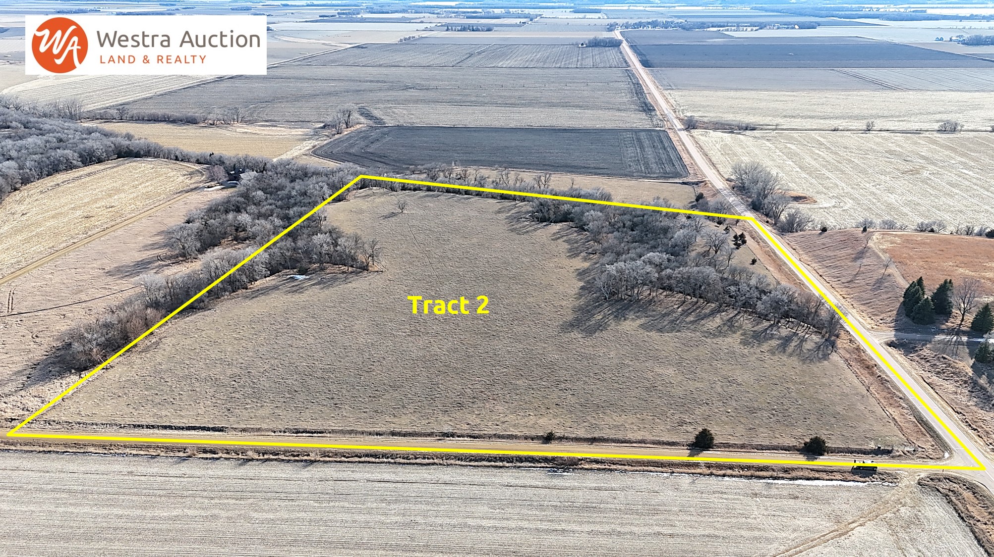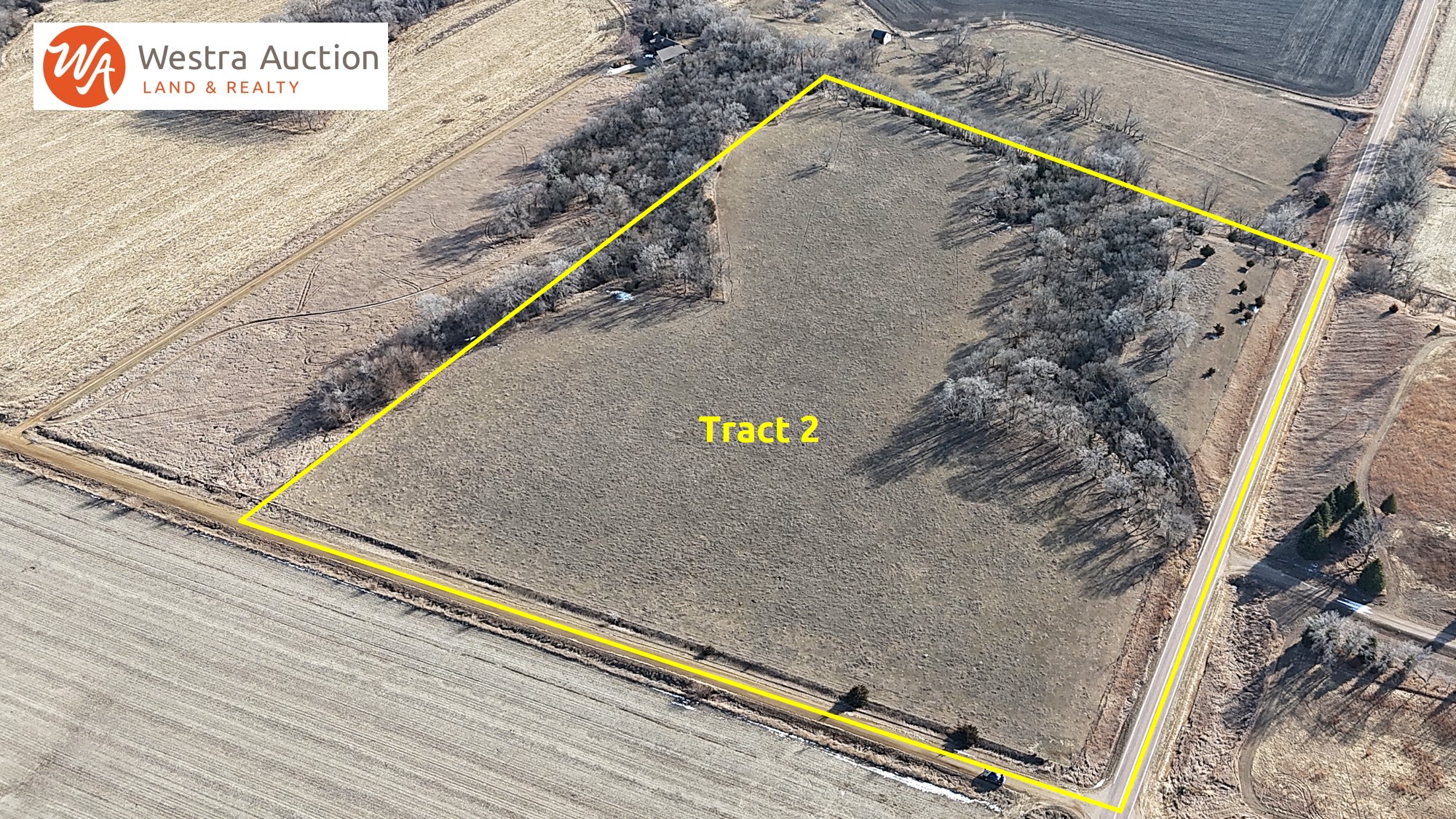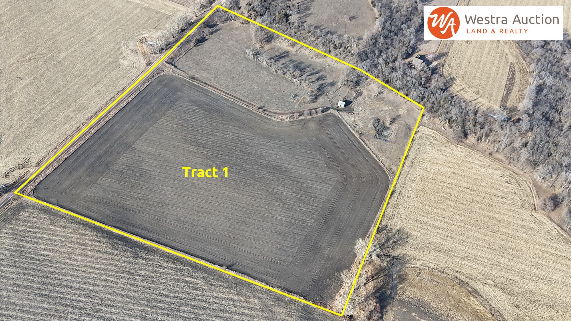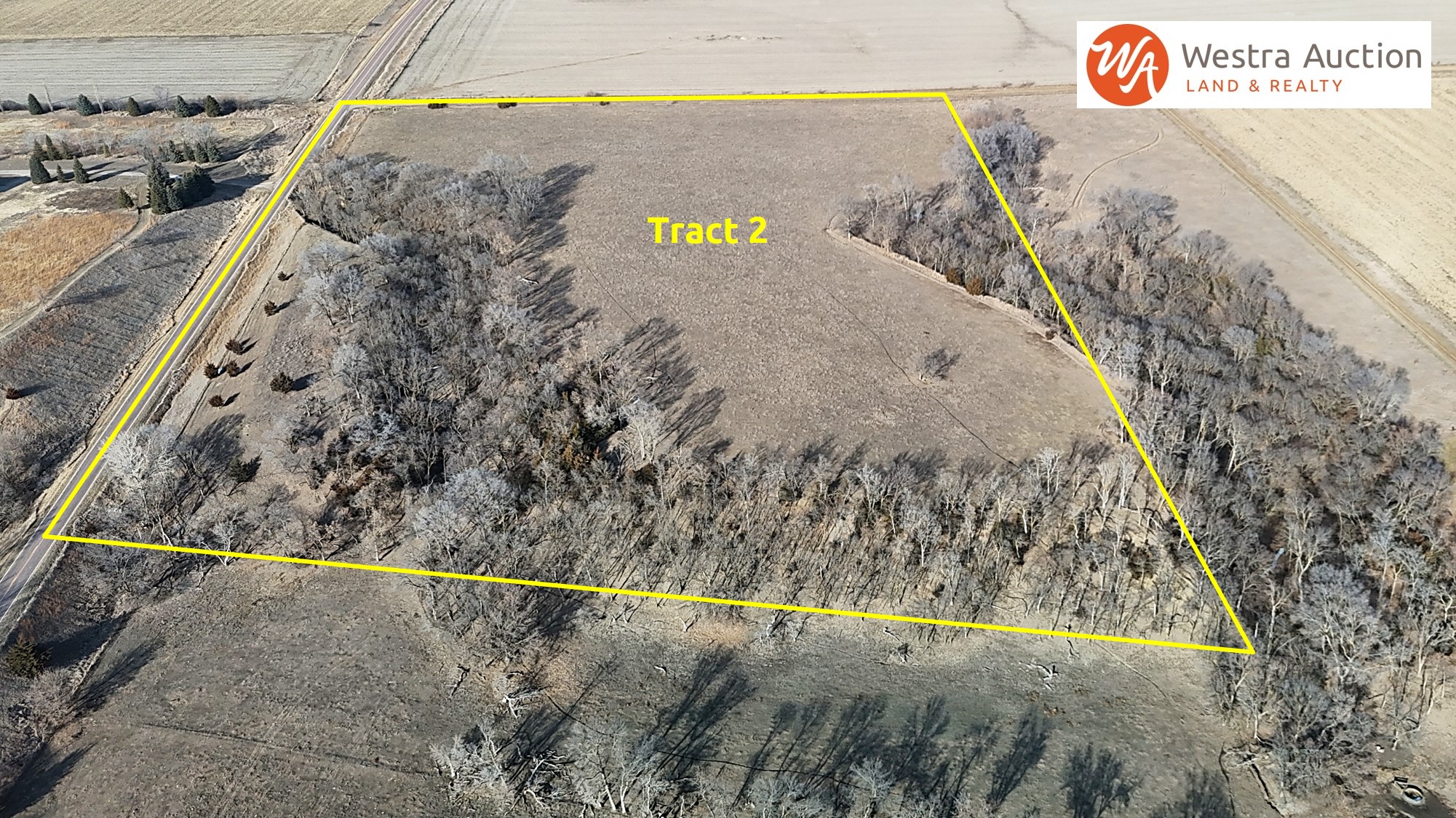 Tract 1:  39.43 +/- acres, 1 building eligibility.  The land includes approximately 25 acres cropland with the balance of the land in pasture, trees, dugout, well and older outbuildings.  According to Surety-AgriData, the land has a productivity index of 82.2. The cropland is leased for the 2025 crop year and the buyer will be credited the 2025 crop lease payment.