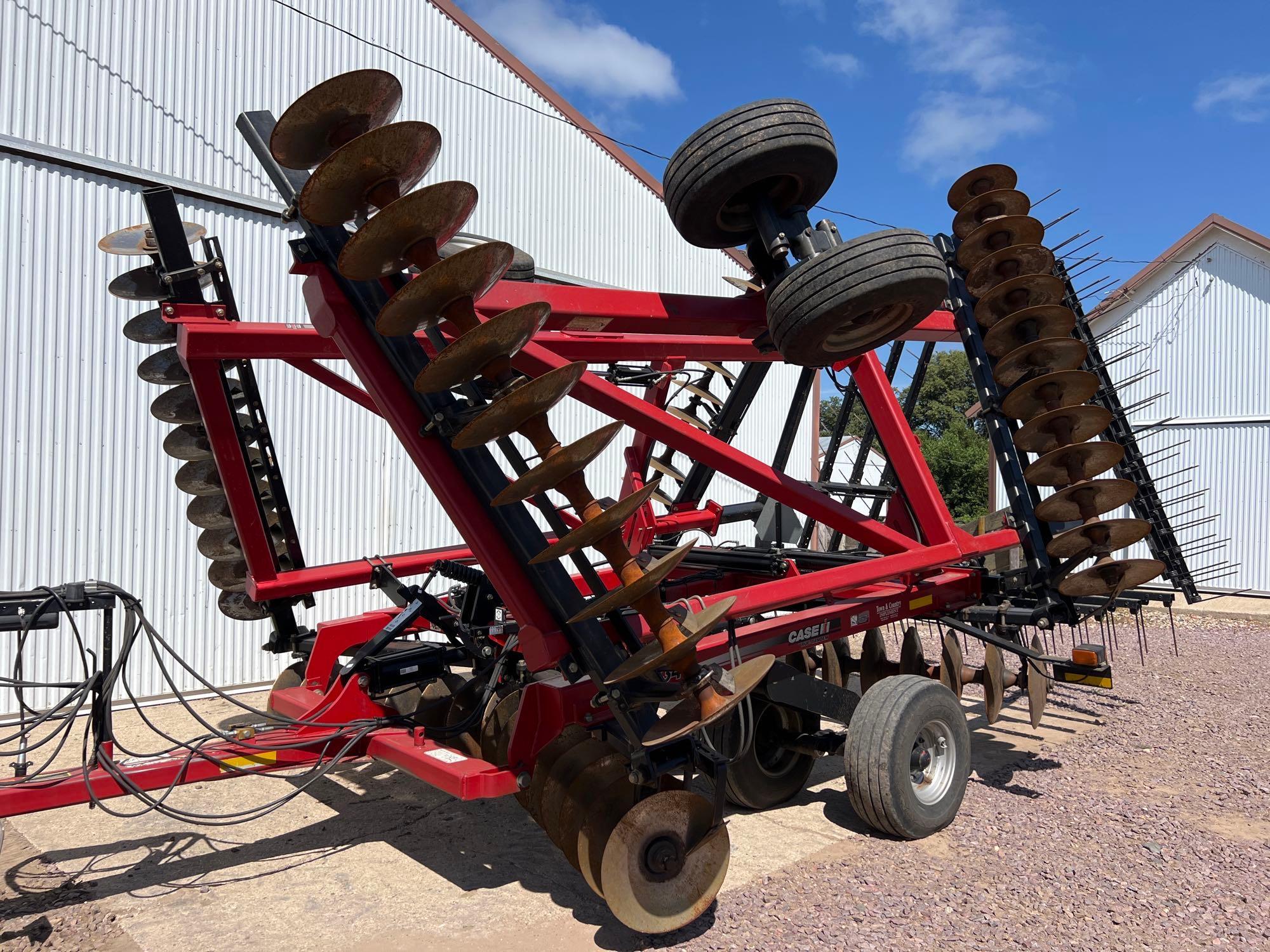 Disk: 2010 Case IH 340 True-Tandem 28ft Disk—1 Owner, SN:JFH0048537, 3 bar harrow, hyd leveling, 20” front blades, 21” rear blades: