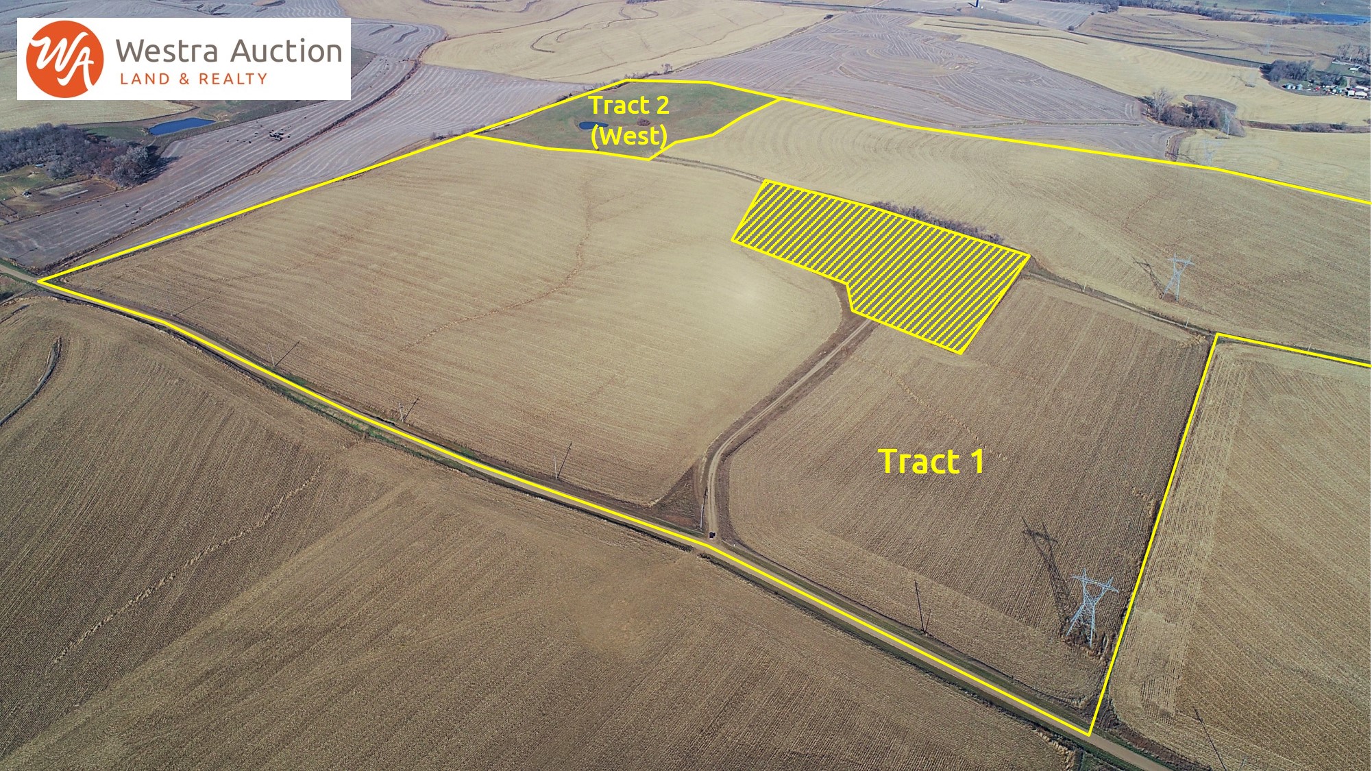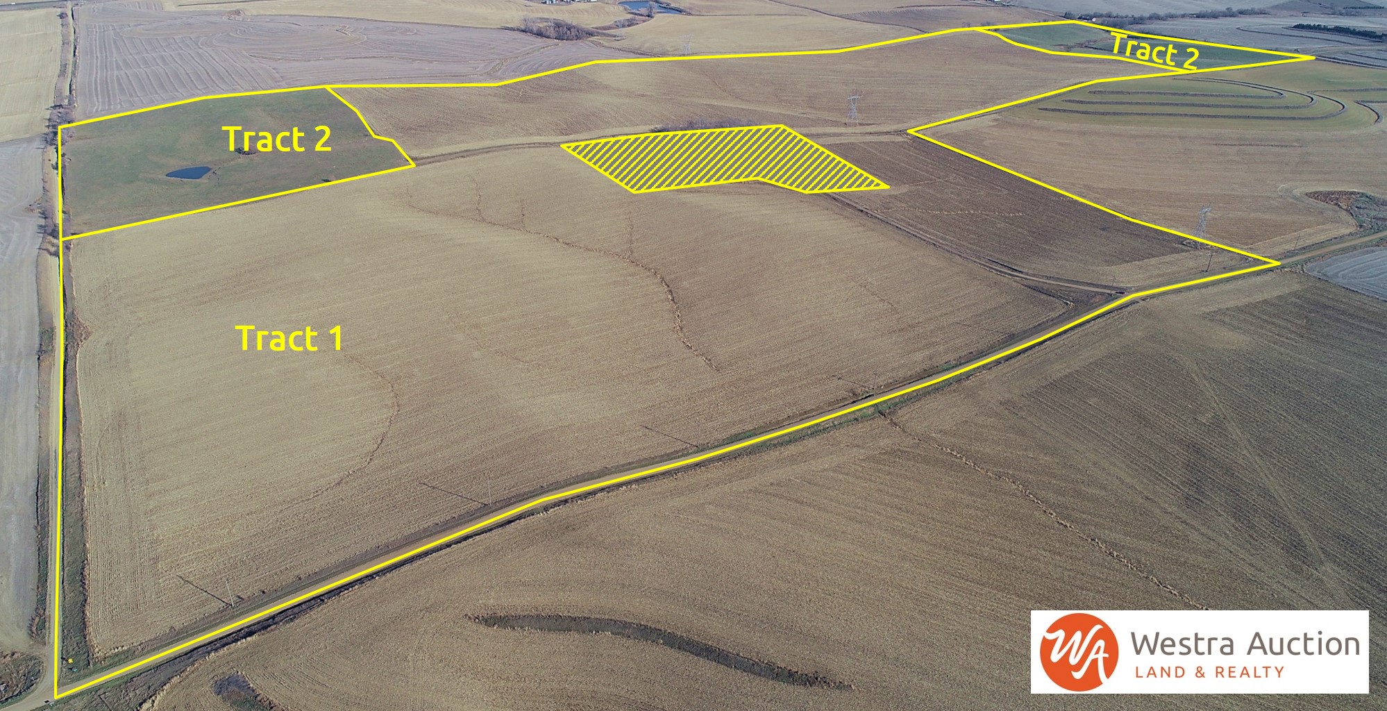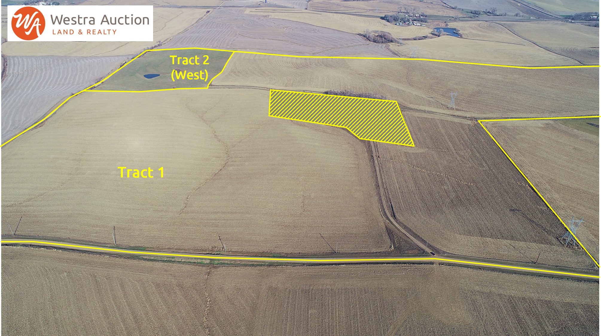 Tract 1: 178.62 +/- acres of cropland/road/alley. Predominate soils include Crofton-Nora complex, 6 to 11 percent slopes, eroded, Crofton silt loam, 12 to 20 percent slopes, eroded, Alcester silty clay loam, 2 to 6 percent slopes. According to Surety AgriData the land has a productivity rating of 59.3. The topography of land is rolling hills. According to the FSA, the corn PLC yield is 146 bushels, and the soybean PLC yield is 43 bushels. The farm will be reconstituted after the survey. Transmission towers are located on the property. The property has an easement on the driveway to allow access to the acreage.