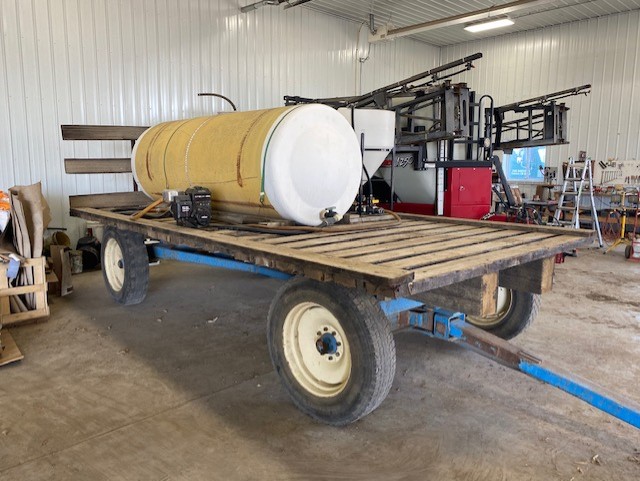 Misc: JD L120 lawn mower, 422 hours, 48’’ deck, deck needs to be replaced; 250-gallon saddle tanks, NH TG285 brackets; 60’ 3pt. sprayer boom; Dakon 240 bu. gravity wagon, auger, tarp.