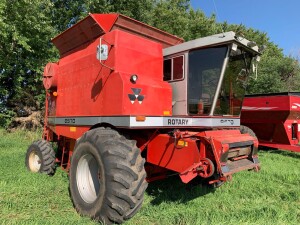 Combine: 1990 Massey Ferguson 8570 Combine-Sn-L00210, shows 4175 hours, rekord clipper chopper, spreader, 14.9-24 rear tires, 30.5L-32 front tires, heat, a/c, radio, runs/operates good: