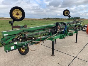 Combine Heads: Massey Ferguson 9750 20ft bean head with custom cart-Sn-S21255, JD gear, new poly skids were installed last year: