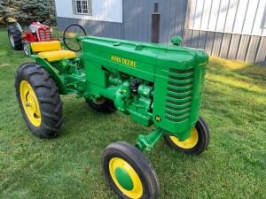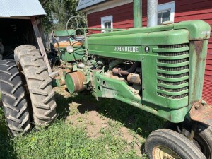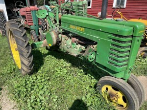 Non Running Tractors: 1955 John Deere 60 Tractor—nf, ps, 13.6-38 tires, no 3pt, not running: John Deere A Tractor–nf, rear hydraulic, 13.6-38 tires, not running: 1941 John Deere B Tractor-pressed steel wheels, 10-38 tires, not running: 1939 John Deere H Tractor-1 hydro with cylinder, 9.5-32 tires, not running: MMR Tractor-11.2-34 tires, not running: 1941 IHC H Tractor-12.4-38 tires, not running: