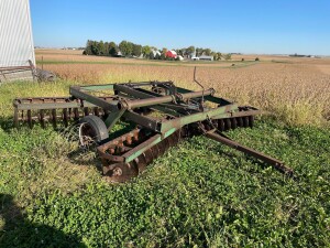 Tillage Equipment: 26ft Sunflower 1434 Disk-3 bar, gates harrow, newer tires, main rock flex, frame, front 22 3/4, back 33 1/4: