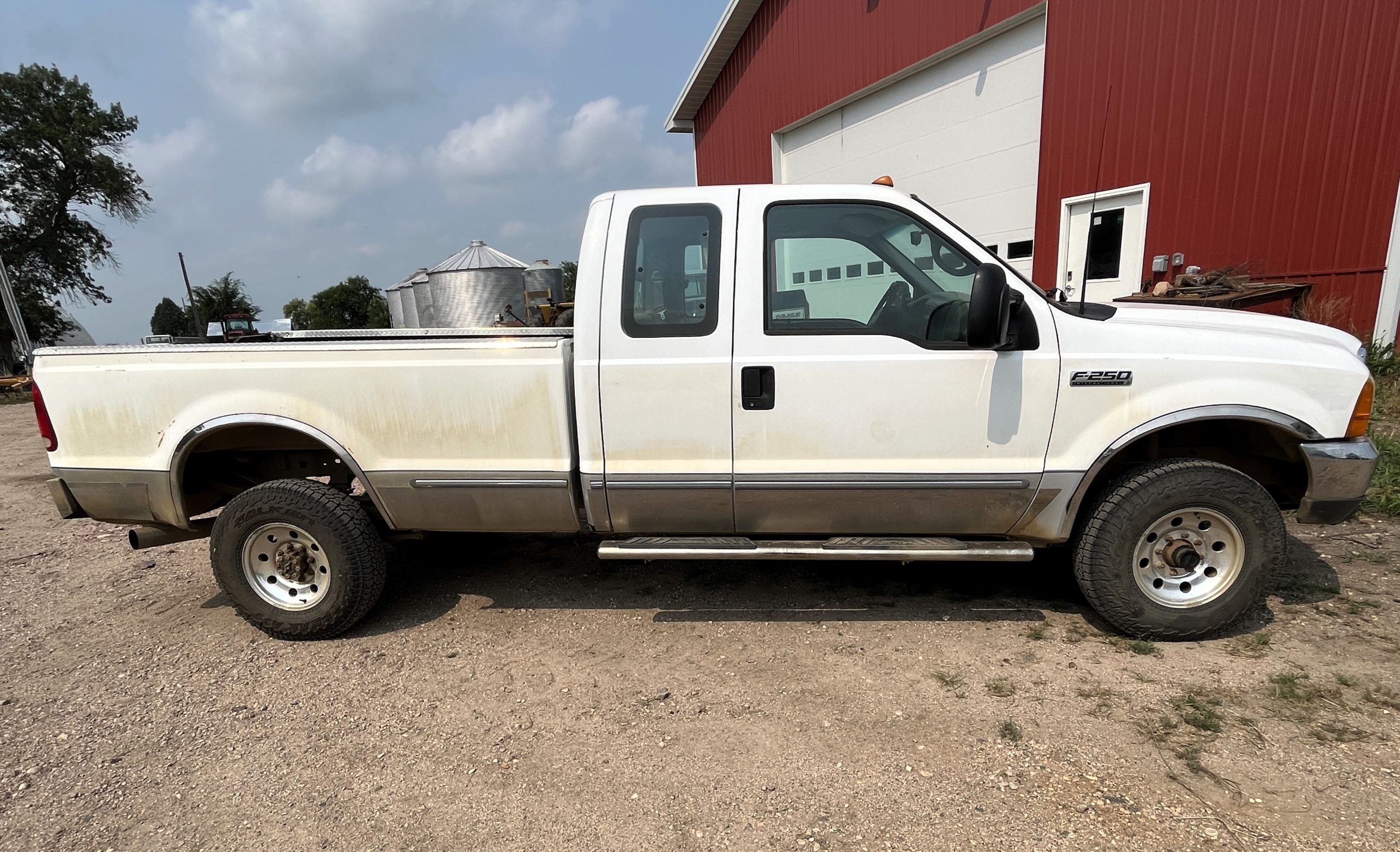 1999 Ford F250 Pickup–Vin: 1FTNX21F3XEB97551, shows 263,780 miles, 7.3L Diesel, 6 spd manual, 4×4, Supercab, 8′ box, Nerf Bars, Camper tailgate, 5th wheel, toolbox, Trailer brake controller, Low mileage 235/85/16 tires, New alternator recently.