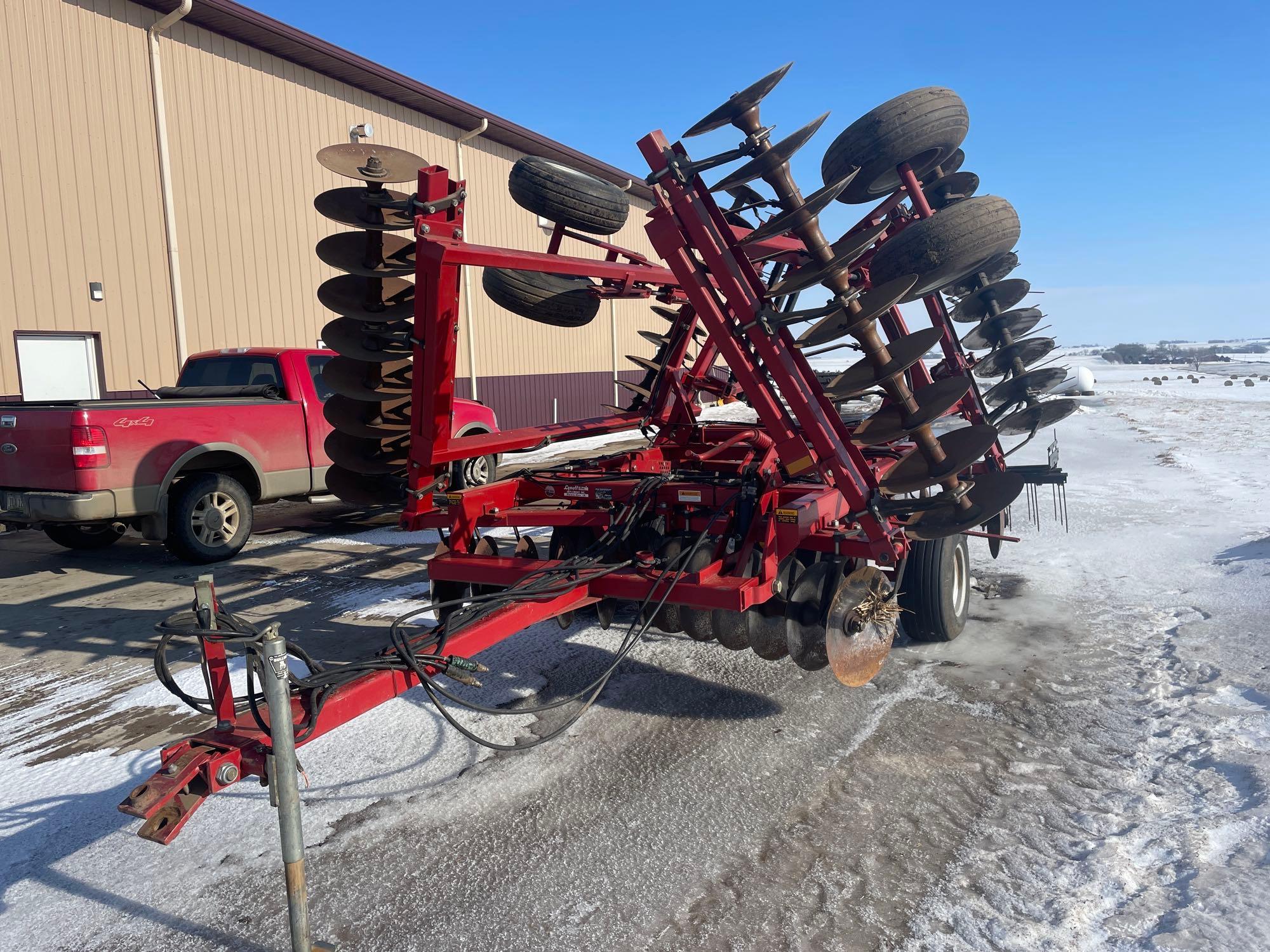 Disk: Case IH 3950 21ft disk—SN:JAG0751431, 21” front blades, 22” rear blades, 3 bar harrow, 11L-15 tires
