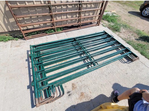Gates/Corral Panels: 5- Vern’s Mfg corral panels–10ft x 65″ tall; 2- Northwest mfg gates–91″ long x 50″ tall; 9- Vern’s MFG continuous fence–20ft x 50″; 2- Northwest MFG gates–139″ long x 50″ tall.