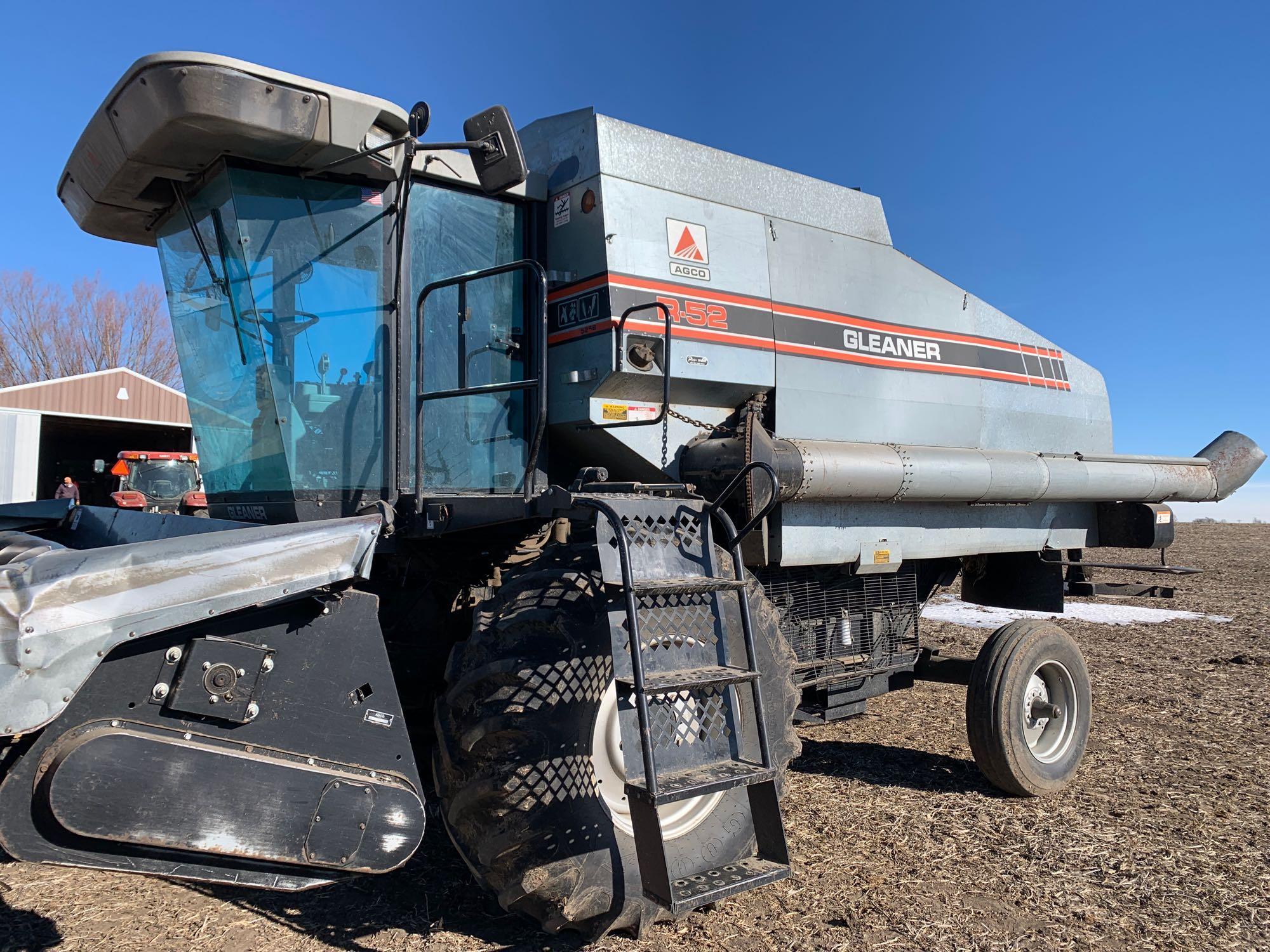 1992 Gleaner R-52 Combine: sn-R5204515, 11.25-24 rear tires, 24.5-32 tires, chaff spreader, 4521 engine hours, 2994 sep hours, Deutz air cooled engine, fully operational