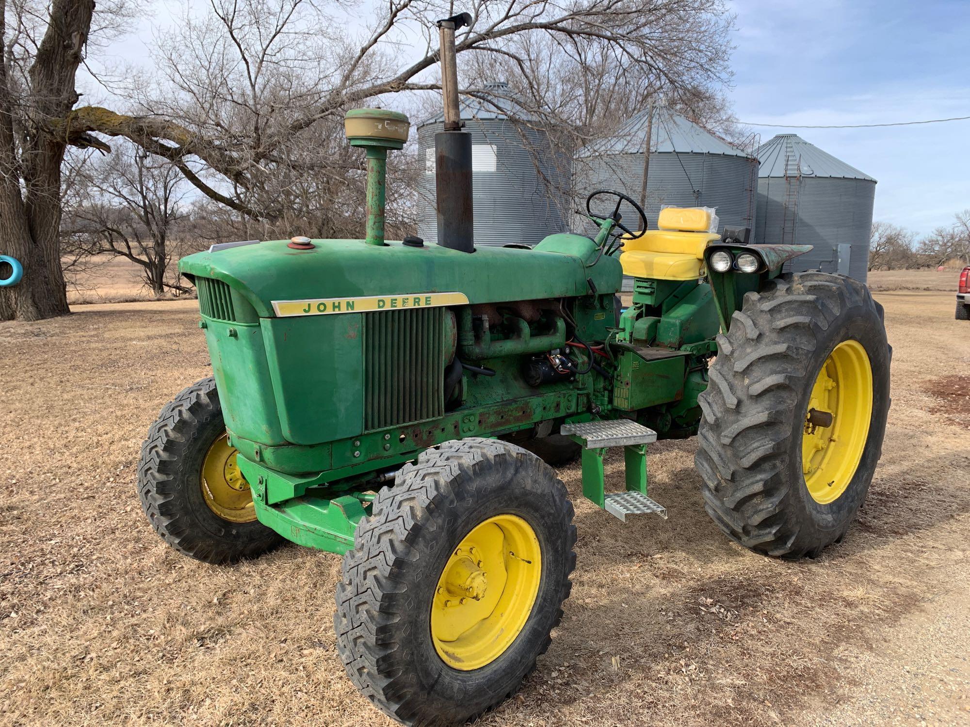 John Deere 4020 Tractor: sn-T213P 144176R, shows 3733 hours, 18.4-34 rear tires, 9.00-20 front tires, power shift, 5010 front end, 540/1000 pto, 3pt, 2 remotes, new rear main seal, powershift pump has been rebuilt by a JD Tech, new starter and altenator-converted to 12 bolt, new seat, rear fenders, custom step