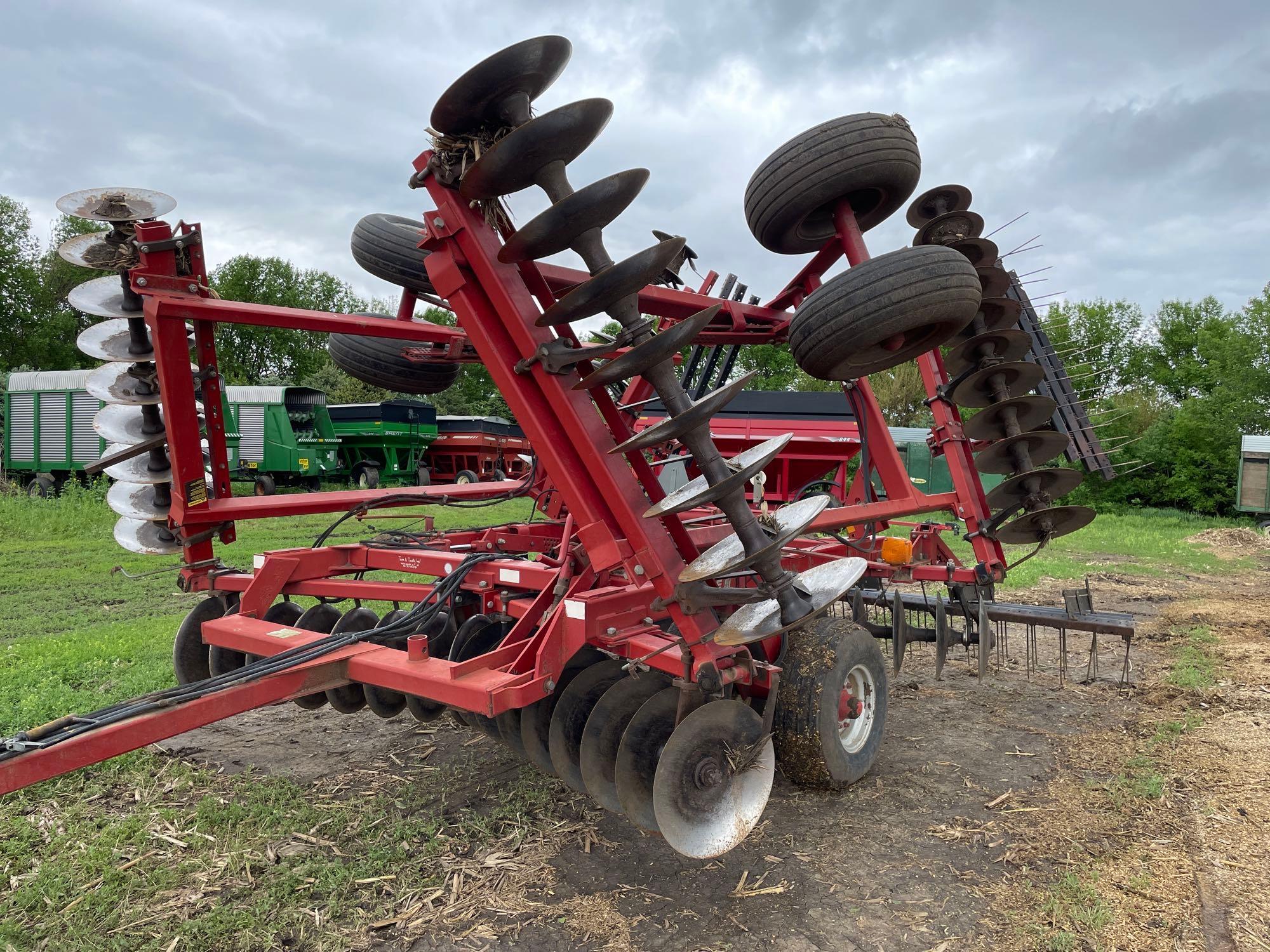 Disk: Case IH 3950 25ft Disk—3 bar harrow, hyd fold, front blades 21 1/8”, rear blades 20 1/2”: