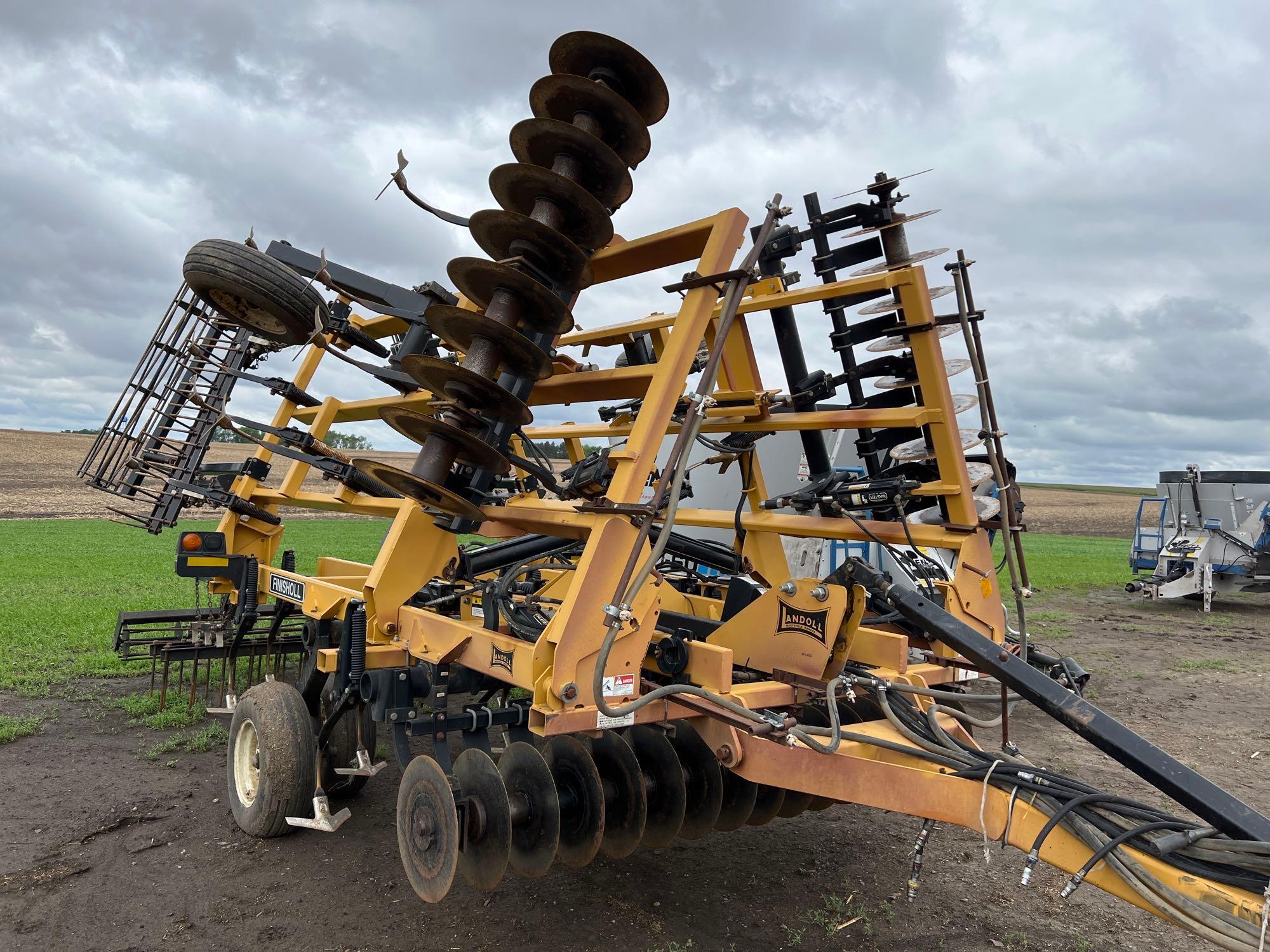Mulch Finisher: Landoll #850 22ft Mulch Finisher—SN-16H0400766, 18 1/4” front blades, 3 bar harrow with rolling baskets, hyd front gang, 9.5L-15 tires, walking tandems: