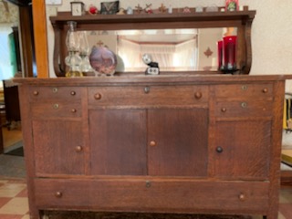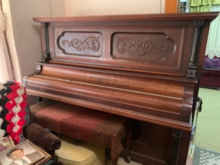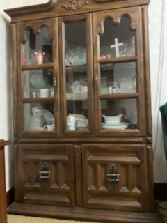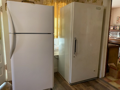 Household: Frigidaire refrigerator; Whirlpool upright freezer; cedar chest, dressers; chairs; dishes; school desk; guitar; wash tubs; piano; kitchen table/chairs; costume jewelry; large lard tins; highchair; cast iron frying pans; pots and pans; trunk; books; buffet/mirror; silver service; electric partial lift chair; coffee tables; floor safe; console stereo; china hutch; glassware; Cannon camera; bedding; Armoire/wardrobe; plus, much more.
