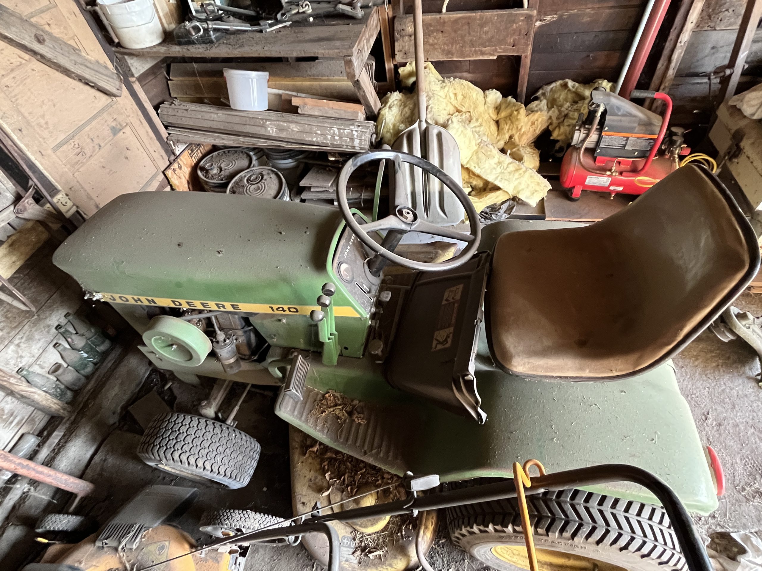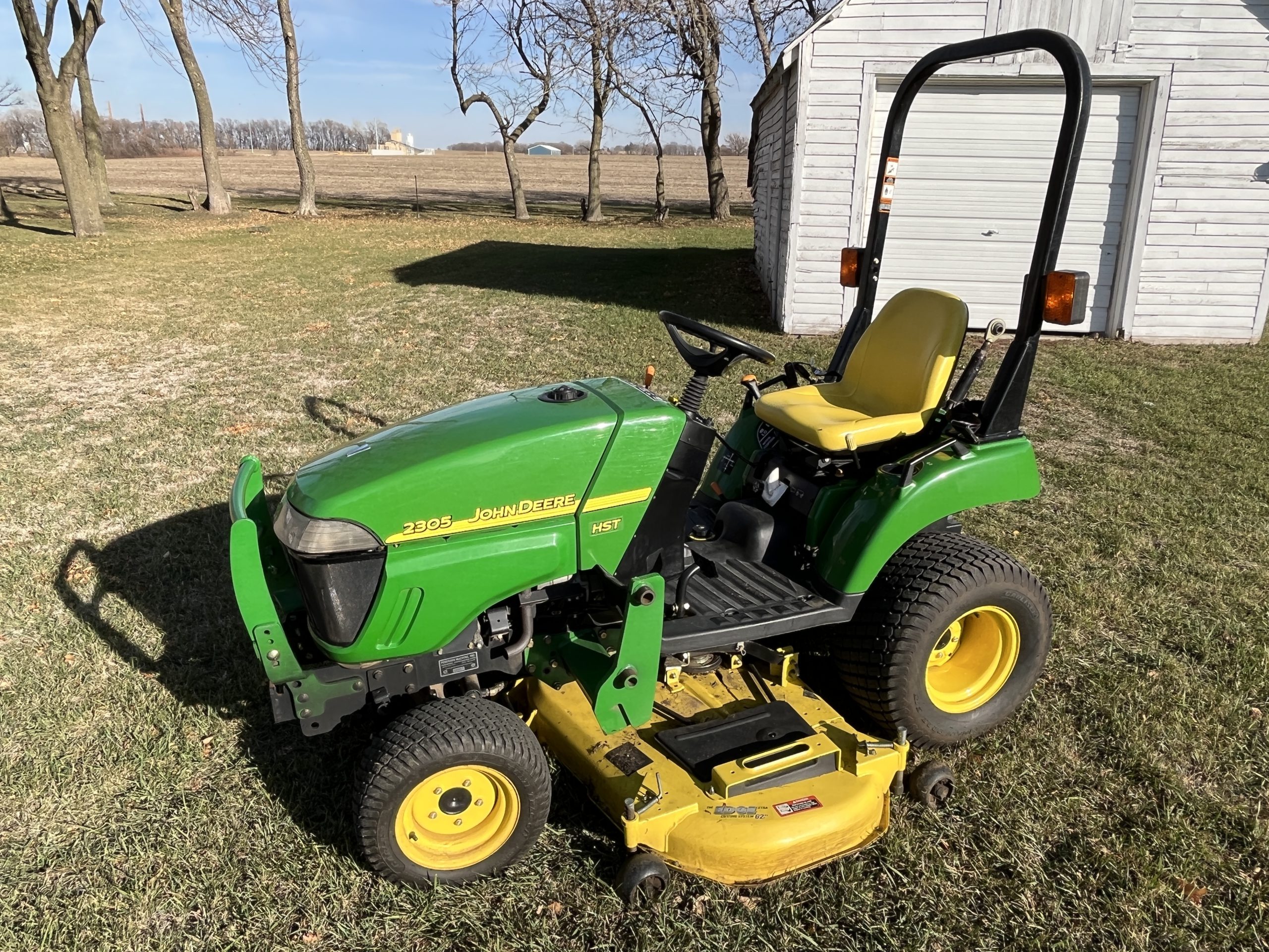 Misc: 2007 JD 2305 HST diesel lawn tractor, 897hrs. 62” deck with JD loader, Very Nice; DR leaf and Lawn vacuum; DR Pro stump grinder; JD 140 lawn mower; push mowers; battery chargers; shop vac; Fimco pull type sprayer; sled; air compressor; scaffolding; JD 295-amp welder; tools; chainsaws; yard tools; Craftsman tool box; step ladder; hand corn sheller; plus, much more.