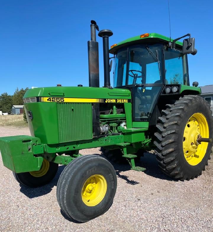 1992 John Deere 4255, SN: RW4255P011844, last 4255 made, 2wd, powershift, new 18.4-42 rear tires, 11.00-16 front tires, tach shows 3,555 hours, toolbox, 3 hydraulics, 14 front weights, quick hitch, hammer strap, the original set of factory ordered wheels and 420/80/46 rear tires will come with the tractor.