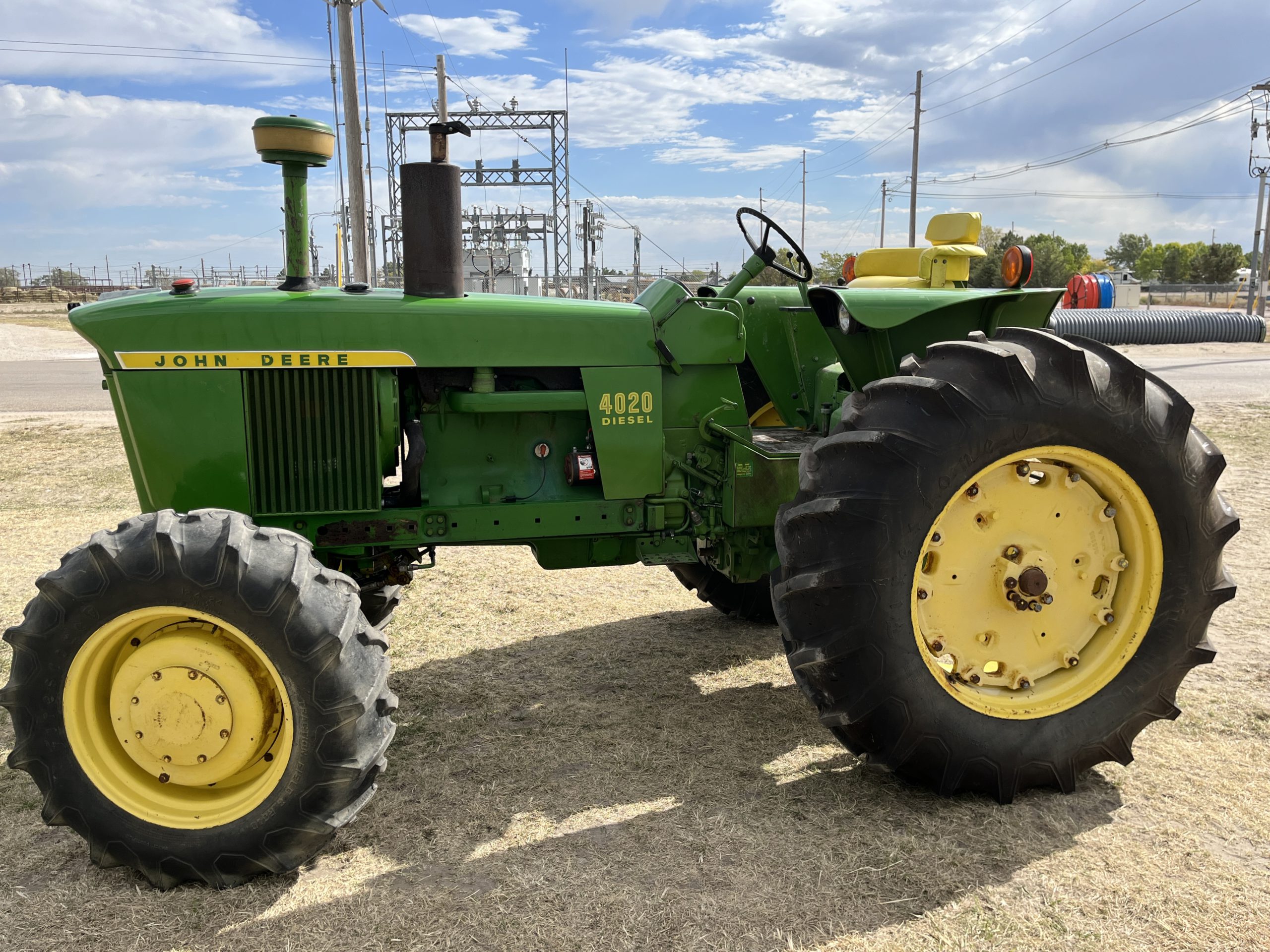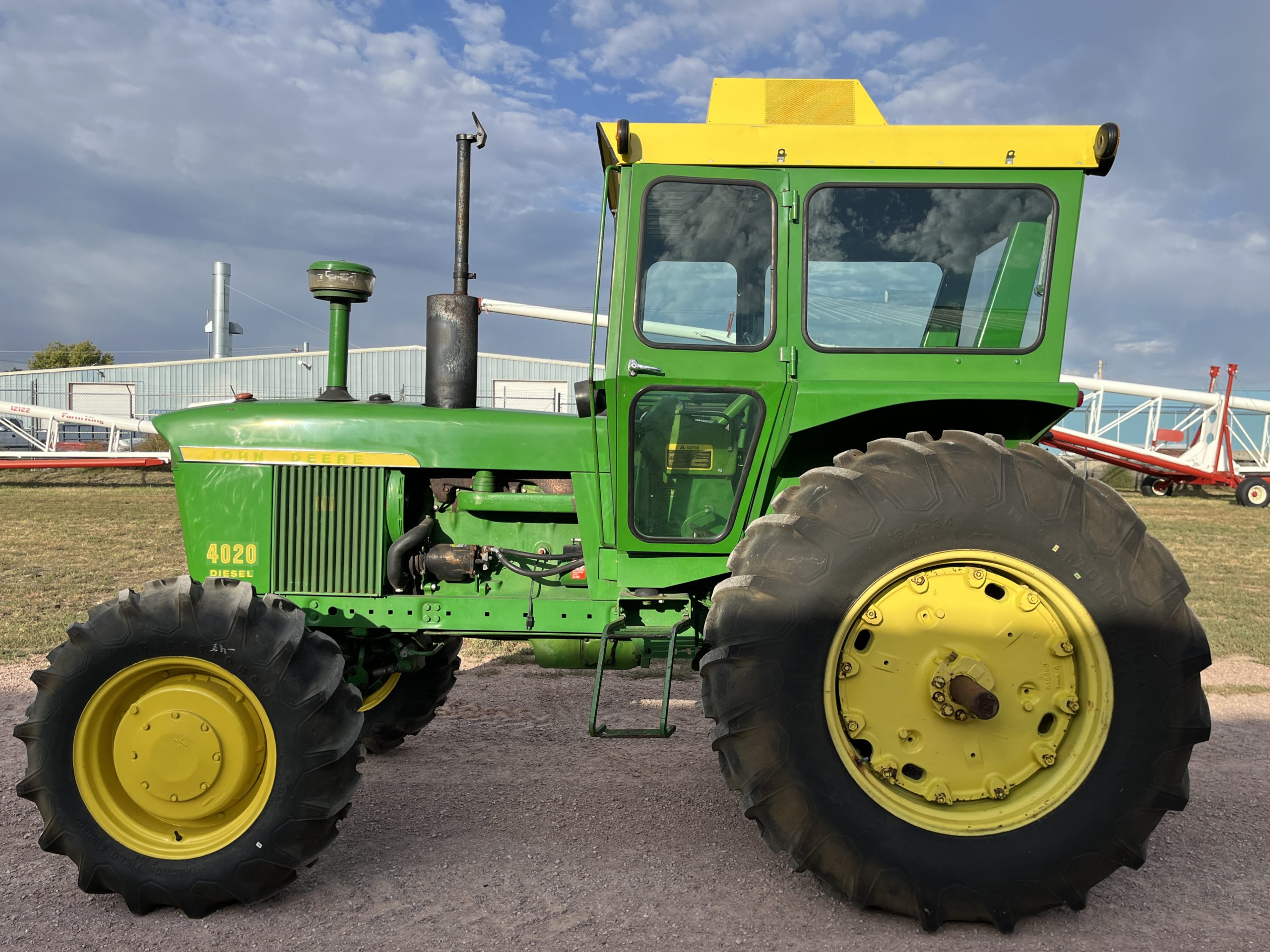 1972 John Deere 4020, SN: T213P267310R, powershift, genuine factory built HFWD, open station, 3 hydraulics, 18.4-34 rear tires, 14.9-24 front tires, toolbox, hydraulic pump disconnect option, exceptional original condition, tach shows 10,109 hours.