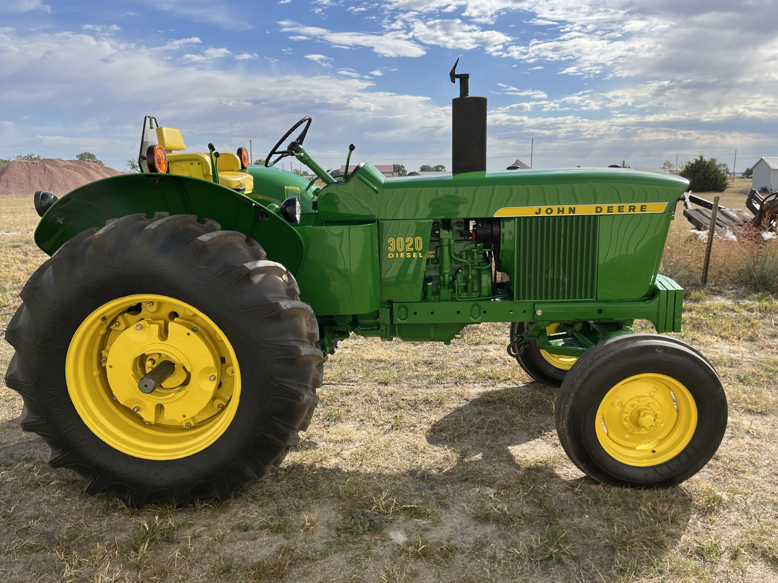 1971 John Deere 3020, SN: T113R152604R, original standard fenders, syncro, 3 hydraulics, 2 front weights, 2 sets of rear weights, new batteries, factory engine and hydraulic oil heater option,18.4-30 rear tires, 7.50-18 front tires, toolbox, tach shows 65 hours (actual hours unknown).