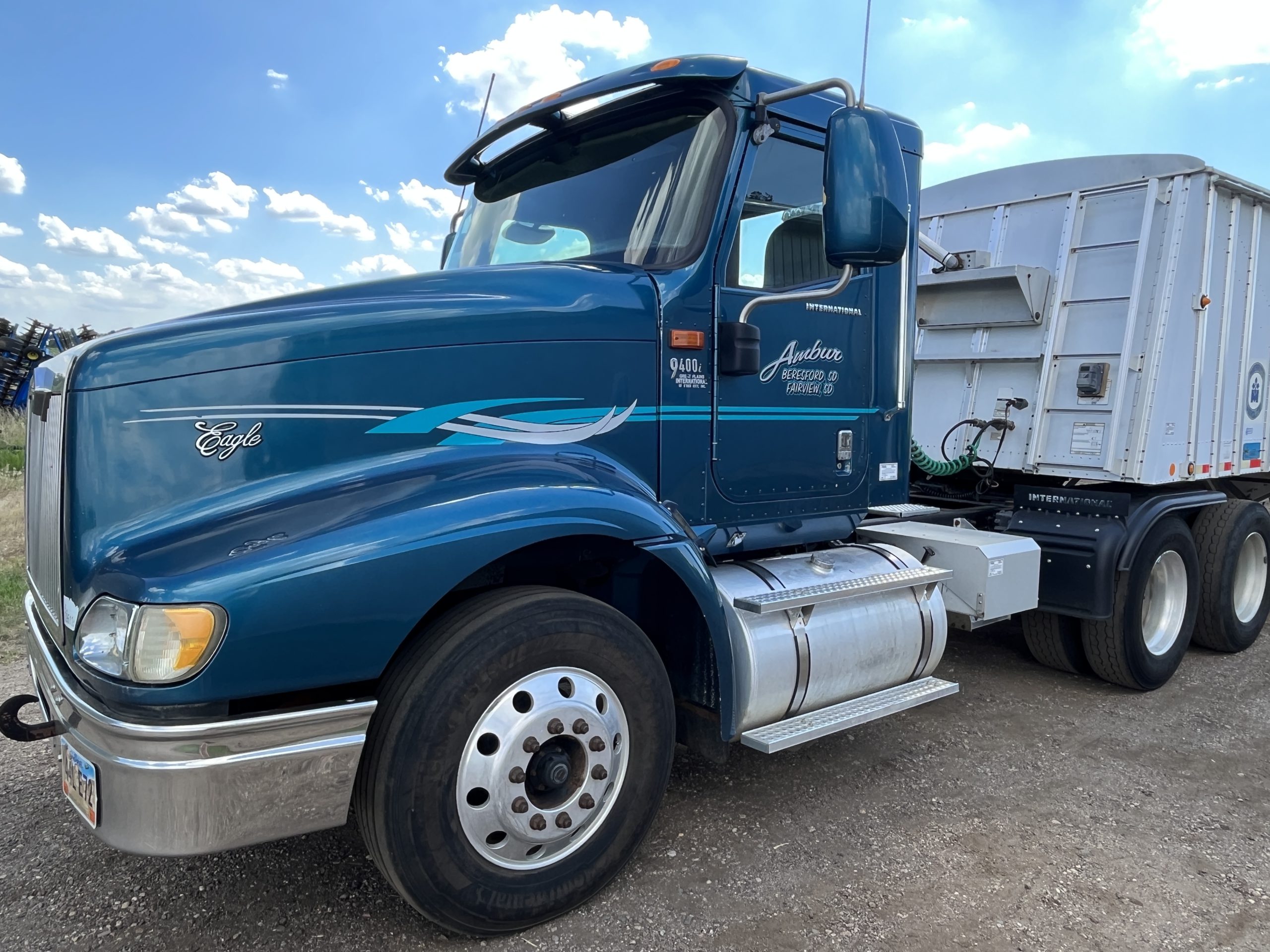 Semi-Trucks/Trailers: 2005 IH 9400I semi, 740,120 miles, ISX Cummins, 3 pedal auto, AC, 234’’WB; 2001 Volvo semi, N14 engine, 748,958 miles, 3 pedal auto, new steer tires, new front axle rear tires, AC; 2012 Dakota 38’ aluminum grain trailer, 24.5 tires, electric tarp, spring ride; 2004 Merrit 38’ grain trailer, aluminum, electric tarp/traps, spring ride; 16′ bumper hitch trailer.