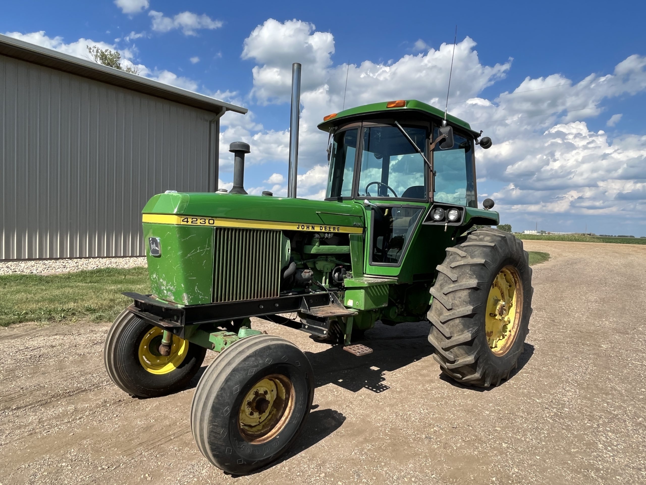 Tractors: 2010 JD 7930, 3,729 hours, MFD, 46’’ rubber, IVT, front suspension, integrated auto steer, 16 front weights, 45GPM hyd. pump, 4 hyd., QH, 1-Owner, super nice! 2001 Cat 95E, 7,567 hours, engine overhaul at 5,459 hrs. (28K spent), powershift, good tracks, Outback guidance, front weights, very clean; 1977JD 4230, M&W turbo, 9,651 hours, new cab kit & seat, quad, 3pt.