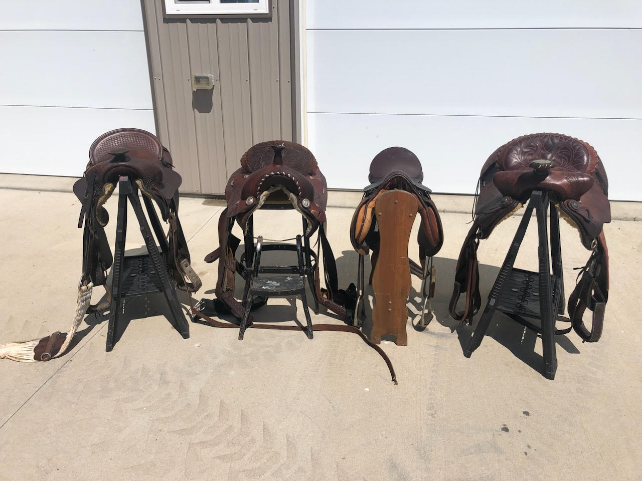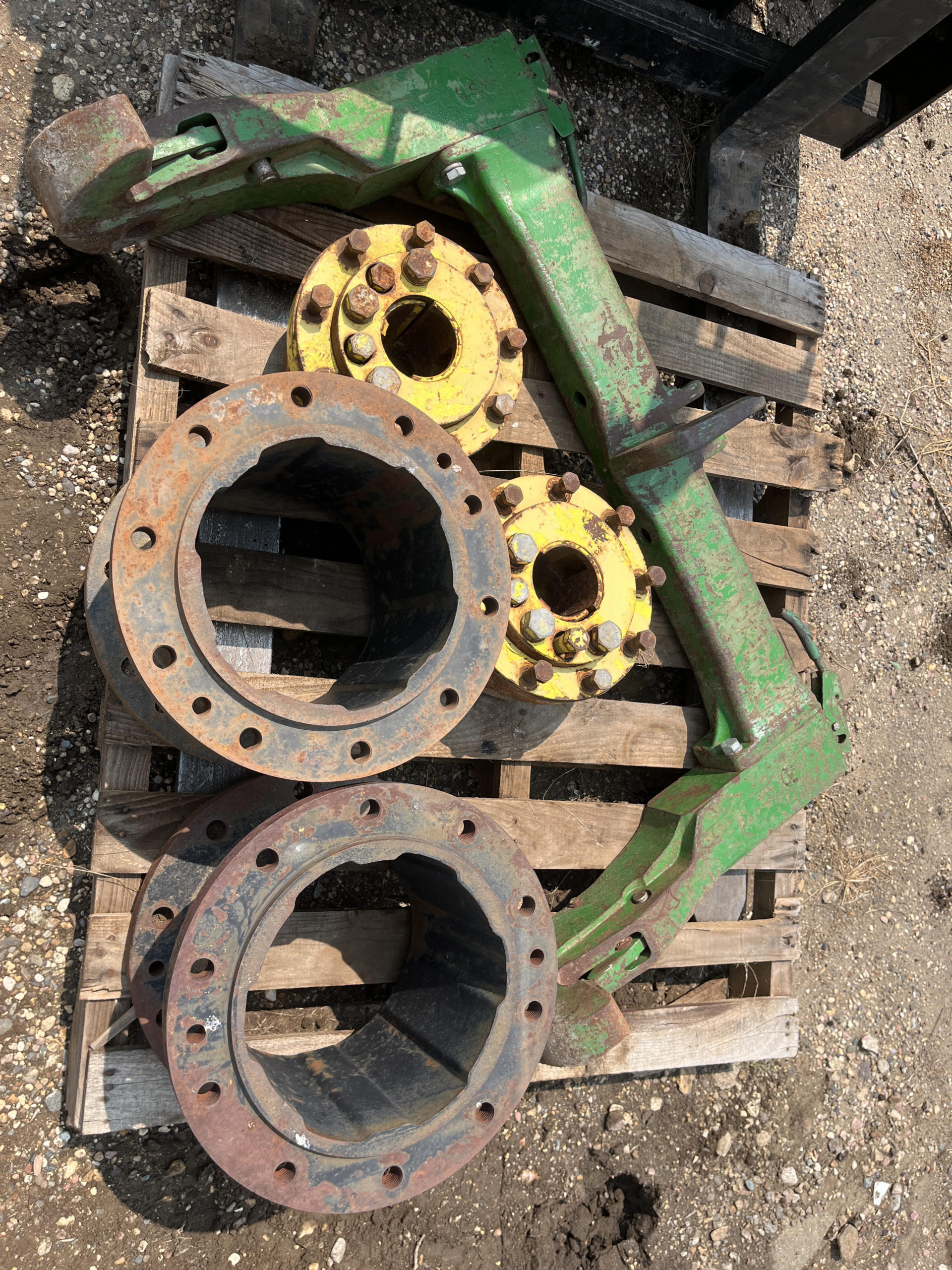 Misc.: Agco 1616 lawn mower, 341 hrs., 16hp, 44″ deck; 3 sets of JD wheel weights, JD Cat 3 QH; JD 9 bolt hubs; JD wheel spacers; heavy duty tow rope; saddles/bridals; misc. tires, misc. tools plus many more items!