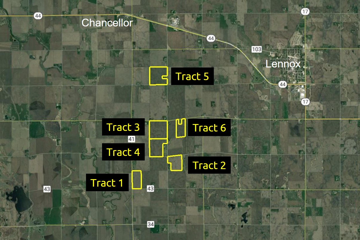 Auctioneer’s Note: We are honored to offer at auction the Winterboer Farms, LLC farmland; some of this land has been in the family since the 1880’s. Don’t miss the opportunity of a lifetime to purchase 693 acres of powerful productive Turner County farmland. These tracts of land feature soils containing 92% -98% Class I ratings. Rarely do you find this consistency in this many parcels of land. The properties are in close proximity to each other and within 5 miles of the Poet Chancellor Ethanol Plant. If you are looking to expand your farming operation or are in the market for an investment this land will not disappoint. The land has been in a corn and soybean rotation and is currently under lease for the 2022 crop year. The buyer will receive seller-enhanced rents for the 2022 crop year, for more information contact an auctioneer. All properties have been well-managed and cared for by the lessees. Make plans to attend this auction today, online bidding is available.