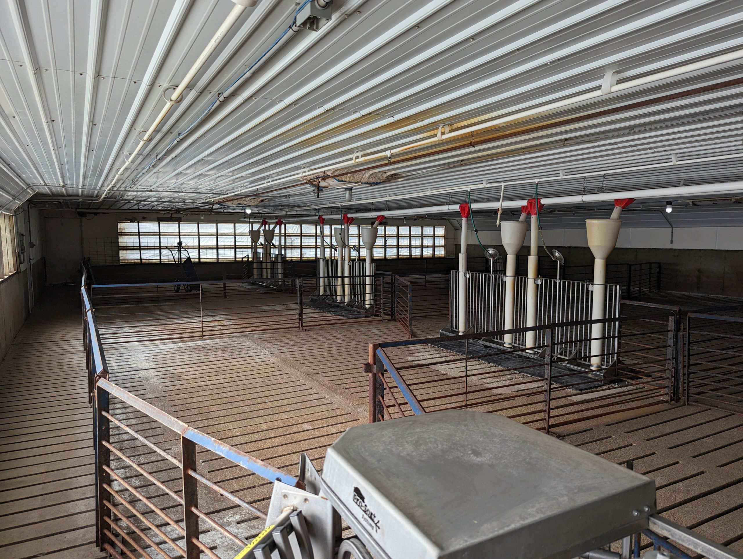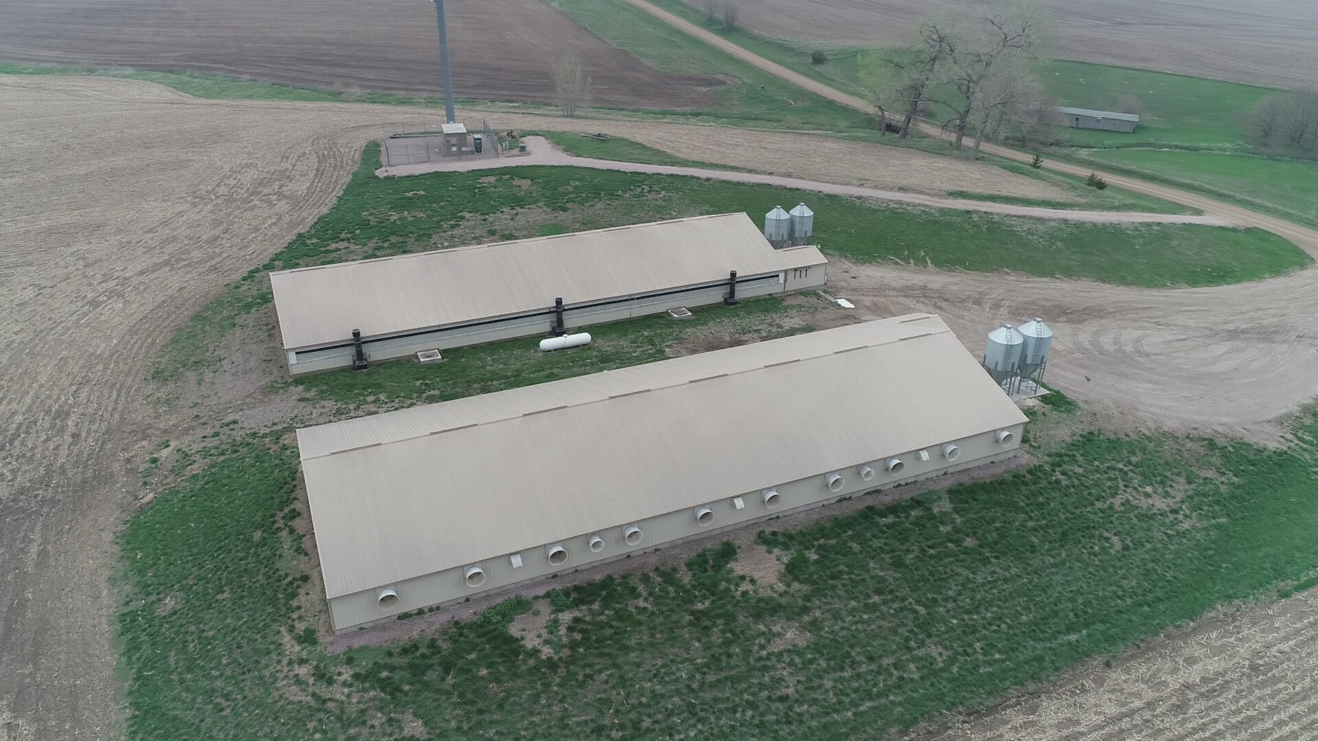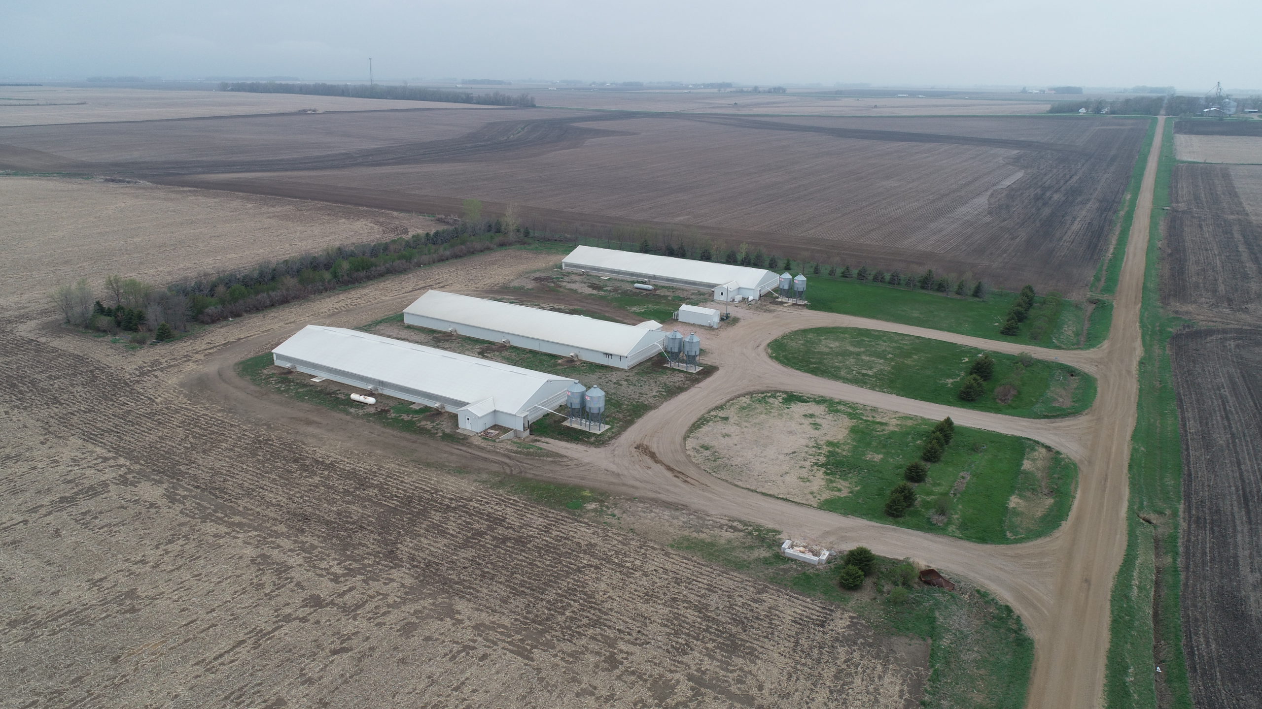 General Description Site 2: Consists of 3 barns all 51’x 172’, two were built in 2006 and one built in 2008 on 4.889 acres. The site includes a 12’x 20’ storage shed and is serviced by a 400 ft well with recent pump work completed and rural water. Each barn has 10 pens, 110 head per pen, 1,100 head capacity. Two of the three of barns have a computerized sort system and have new Choretime feedline systems installed in the last 2 years. All of the barns are tunnel ventilated, Thorp tube feeders, hog slats, brooder lines, 350,000-gal manure pits under each barn, new curtains in 2022. The site also has dock height loadouts, Generac 45KW backup generator, 15-ton Choretime bulk bins, (2) 1000 gallon propane tank (1 owned, 1 rented), (1) 500 gallon propane tank (rented). The west barn recently had $12,000 of epoxy work completed around the feeders. Taxes: $8,074.52/yr. Real estate taxes to be prorated the date of closing.